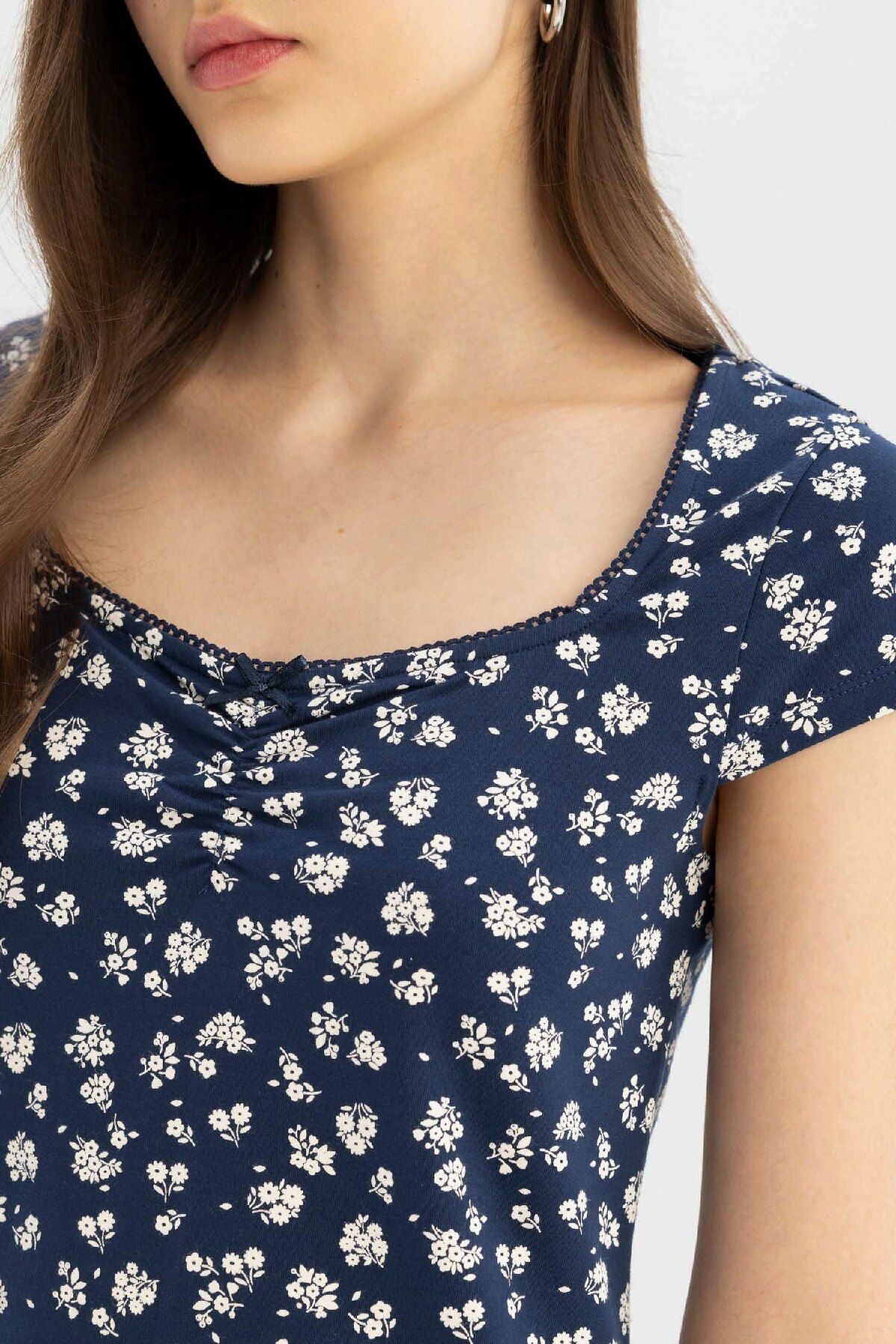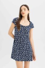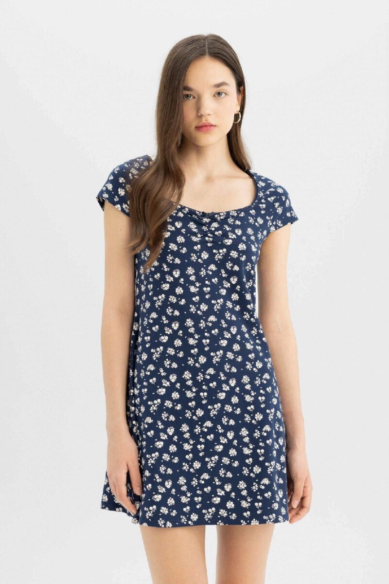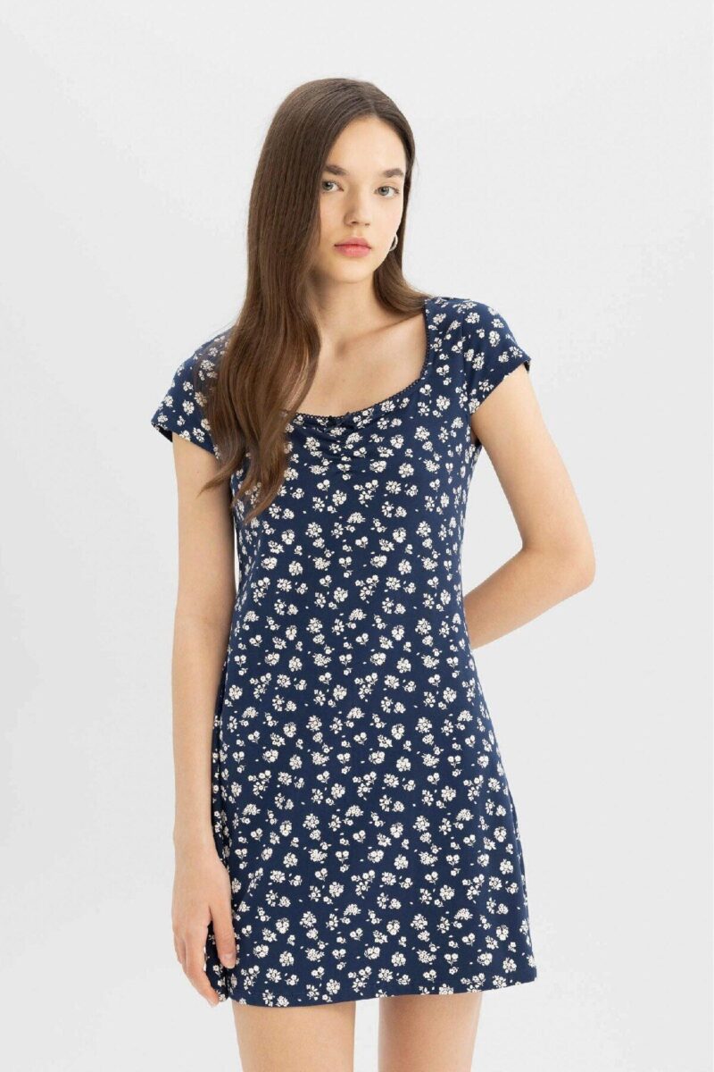 🛍 Defacto Coool Penye Çiçekli Kısa Kollu Mini Elbise C8689AX24SM