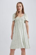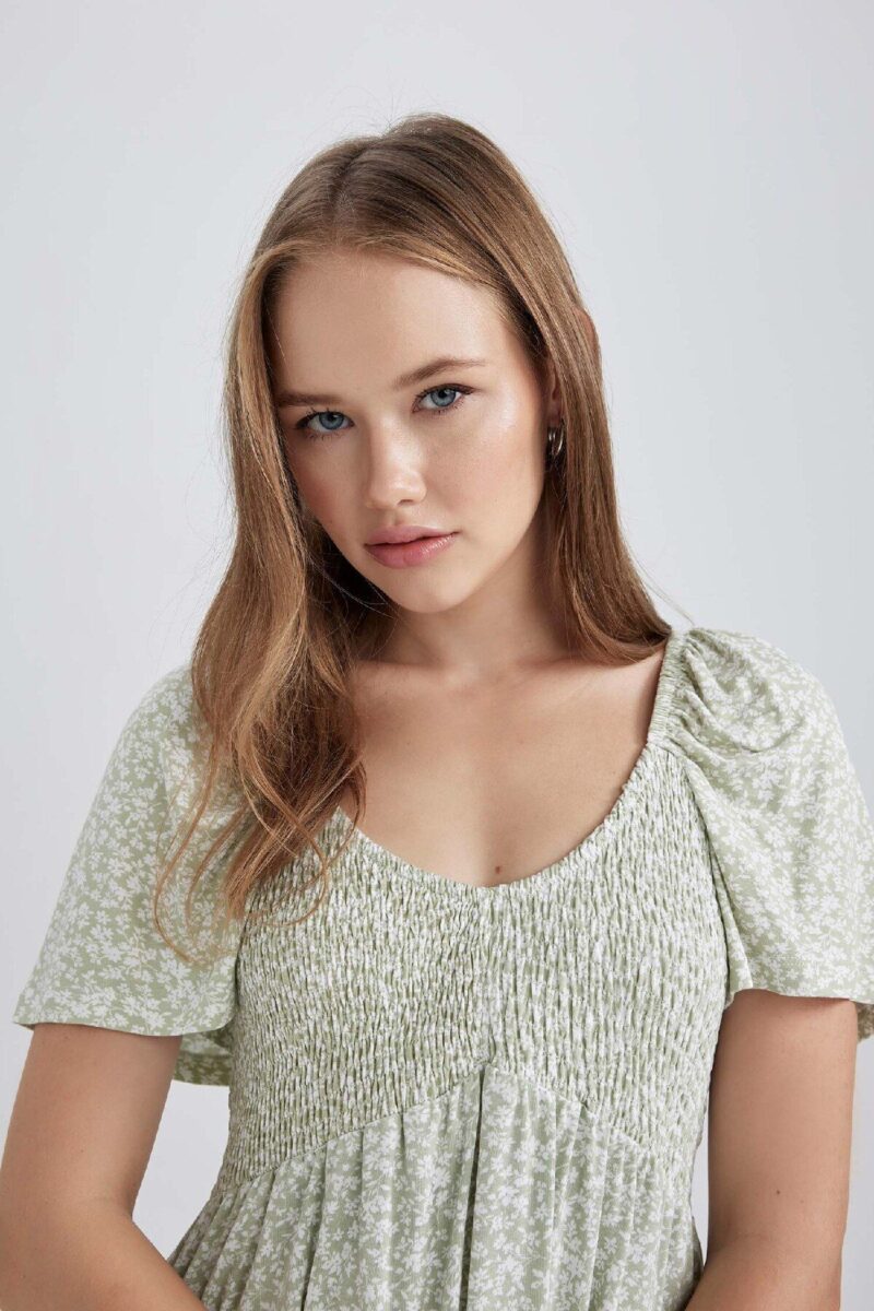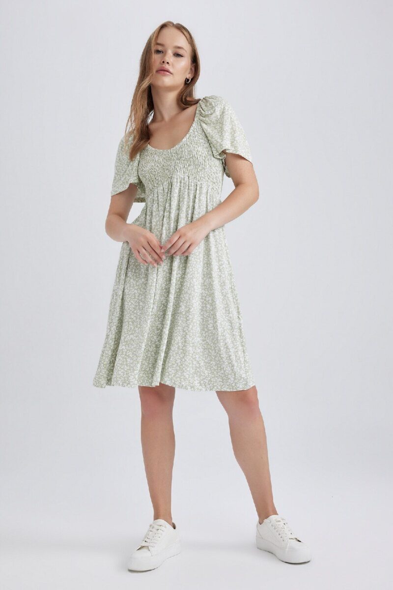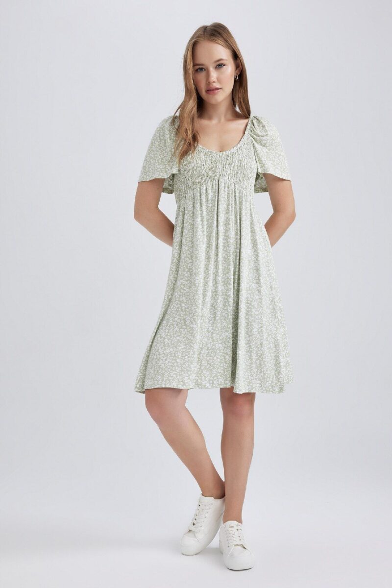 🛍 Defacto Coool V Yaka Desenli Kısa Kollu Mini Elbise B1499ax23hs