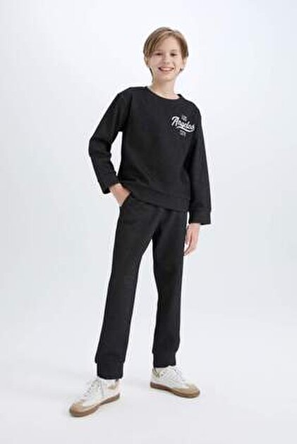 Defacto Erkek Çocuk 2’li Takım Kapüşonlu Baskılı Sweatshirt Beli Lastikli Eşofman Altı D2040A824AU