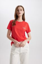 Defacto Regular Fit Bisiklet Yaka Baskılı Kısa Kollu Tişört C2618ax24sm