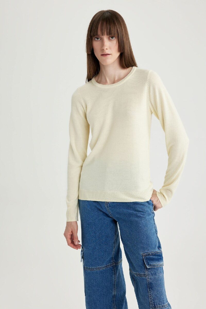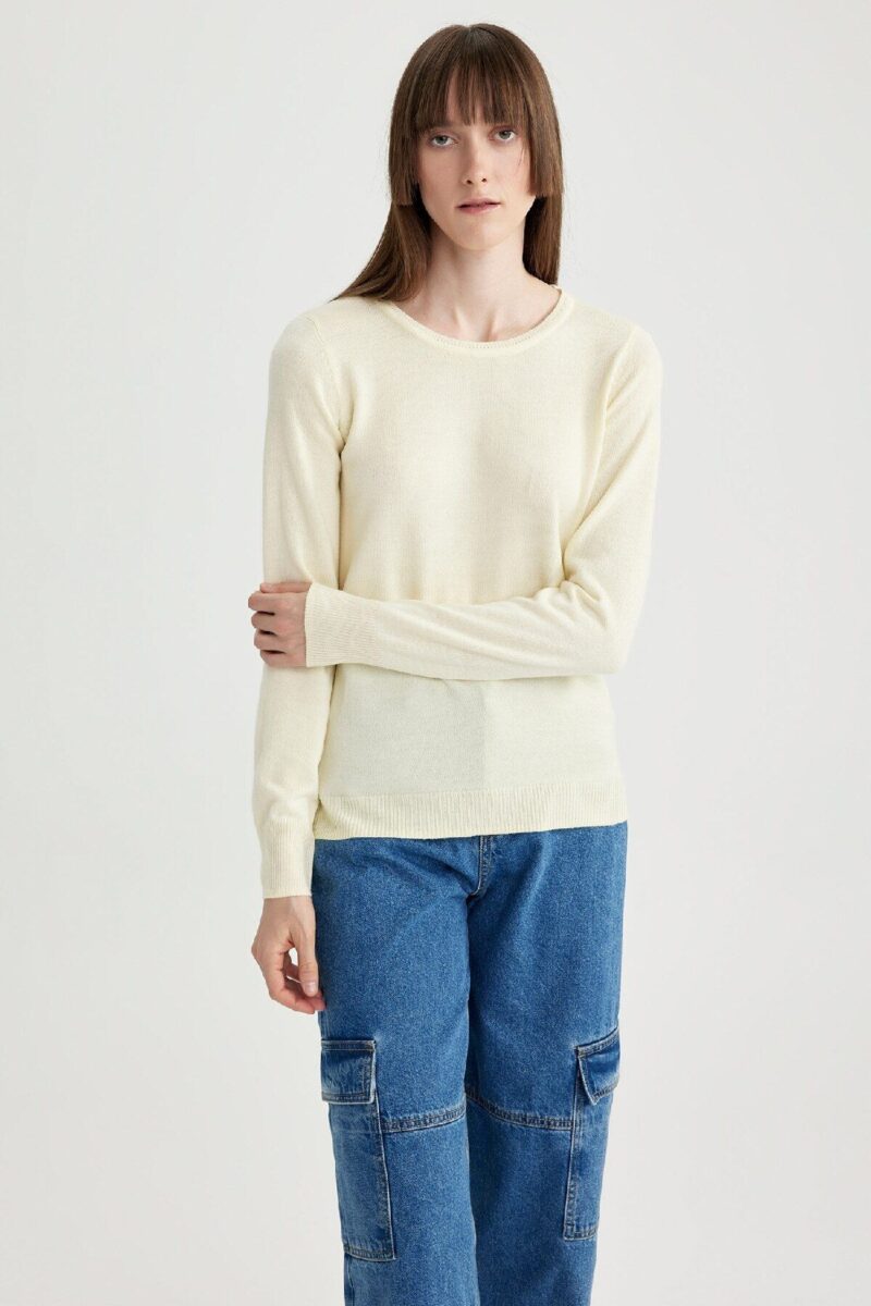 🛍 Defacto Regular Fit Bisiklet Yaka Yumuşak Dokulu Basic Düz Triko Kazak F7091az23wn