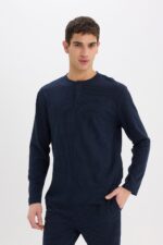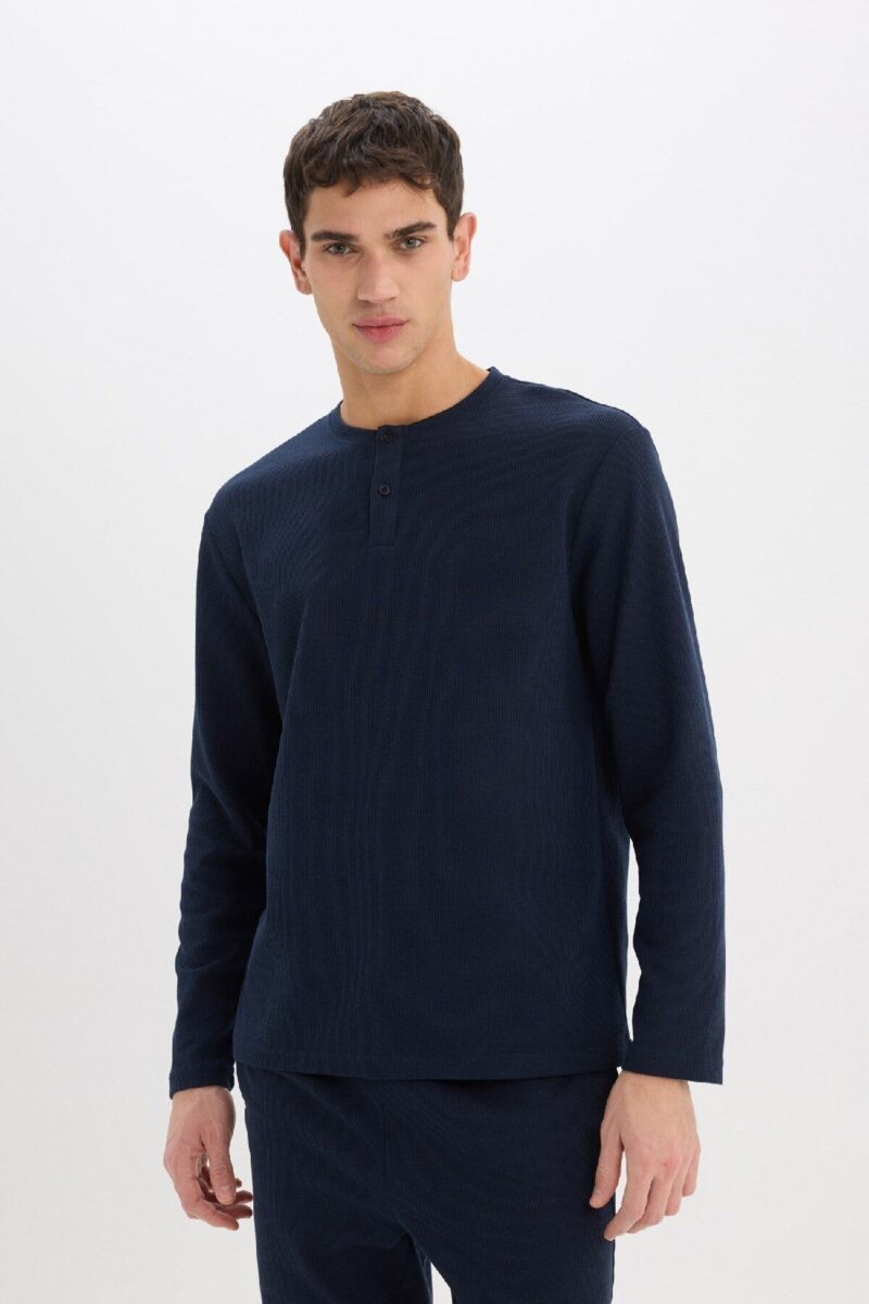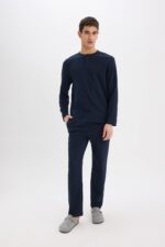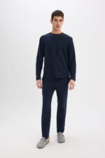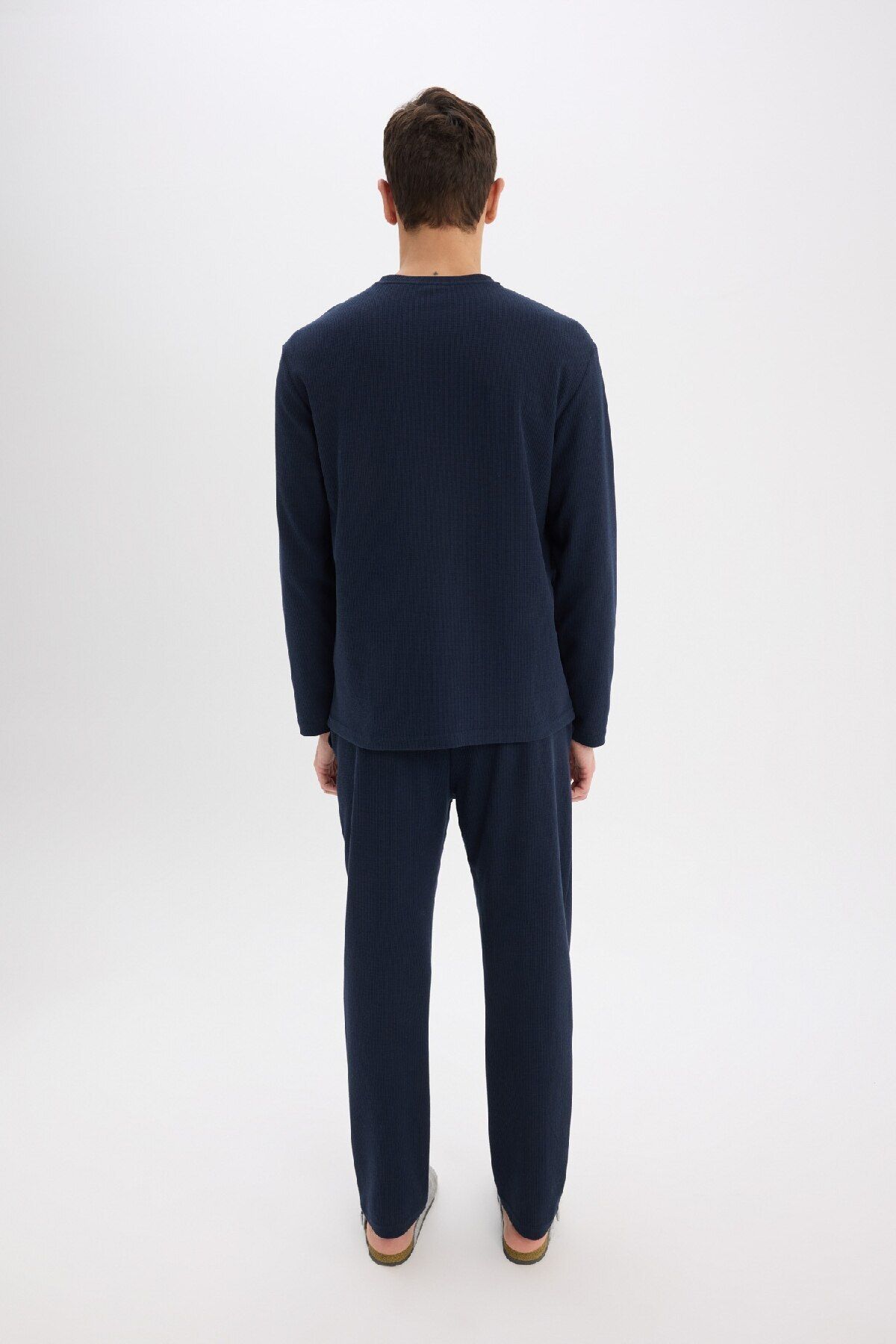 Defacto Regular Fit Waffle Pijama Takımı Basic Düz Bisiklet Yaka Uzun Kollu Üst Uzun Alt D8230AX24WN