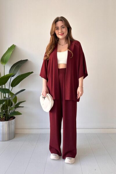 🛍 Defacto Regular Fit Waffle Pijama Takımı Basic Düz Bisiklet Yaka Uzun Kollu Üst Uzun Alt D8230AX24WN