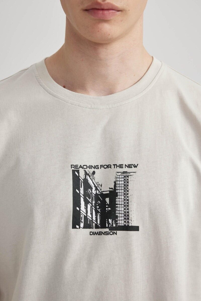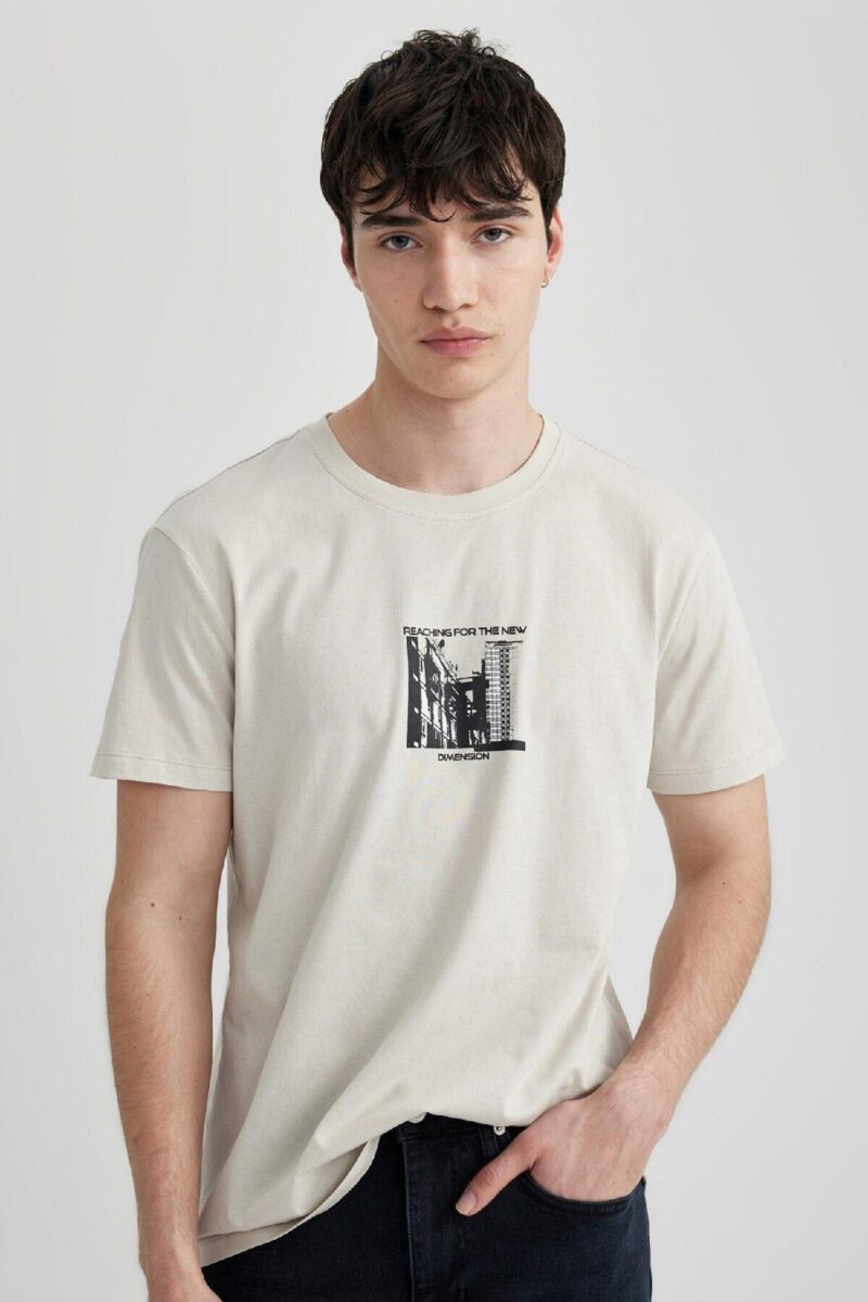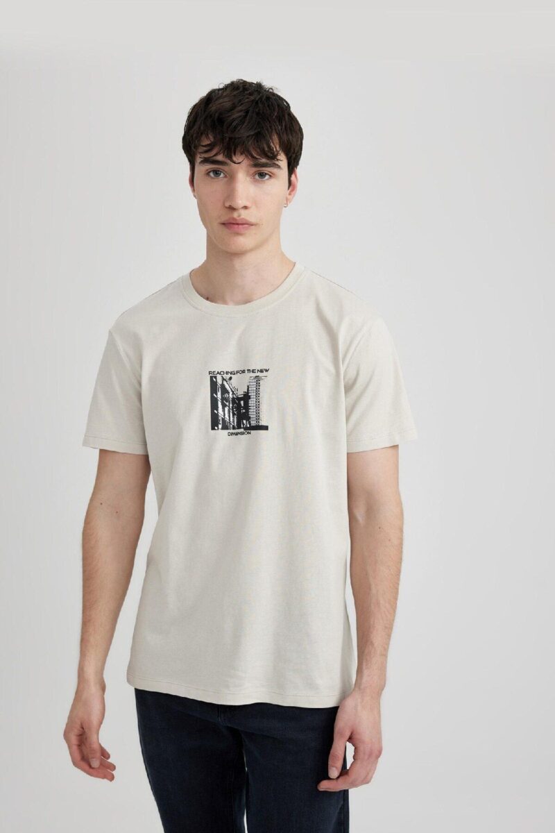 🛍 Defacto Slim Fit Dar Kesim Bisiklet Yaka Baskılı Kısa Kollu Pamuklu Tişört C2133ax24sm