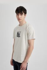 Defacto Slim Fit Dar Kesim Bisiklet Yaka Baskılı Kısa Kollu Pamuklu Tişört C2133ax24sm