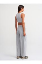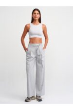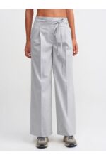 Dilvin 71285 Kemerli Pens Detaylı Yüksek Bel Pantolon-Gri