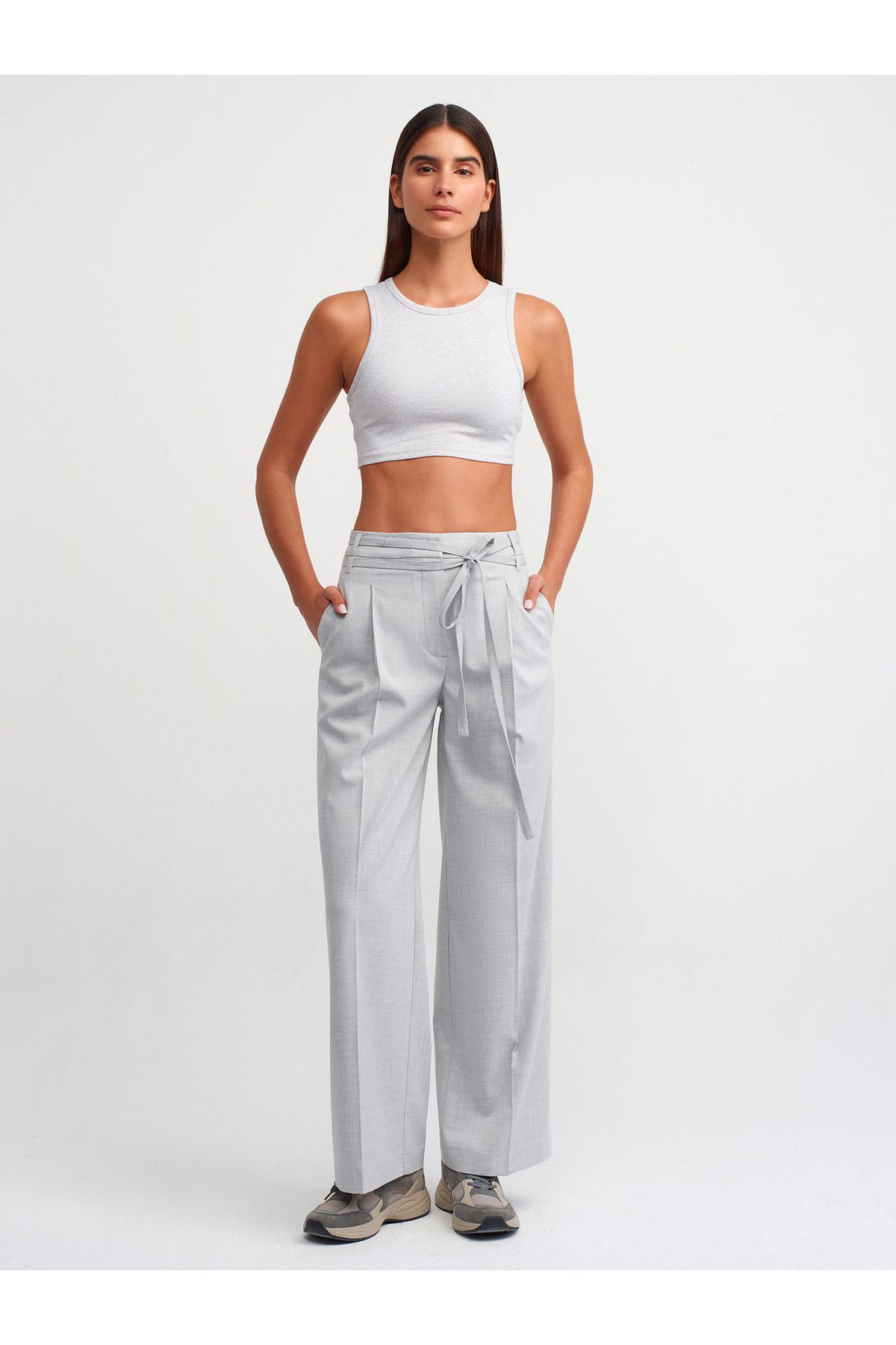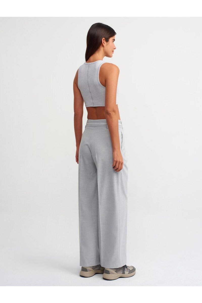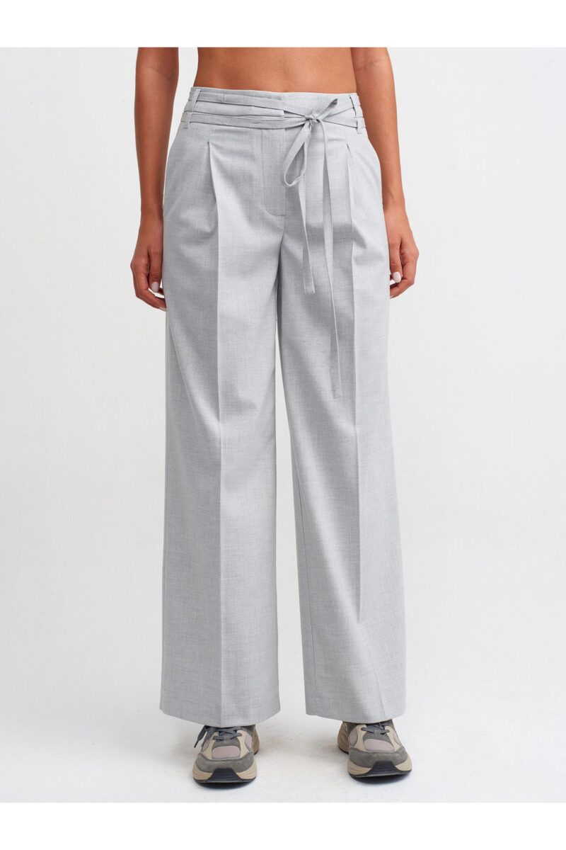 🛍 Dilvin 71285 Kemerli Pens Detaylı Yüksek Bel Pantolon-Gri