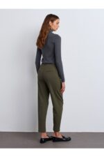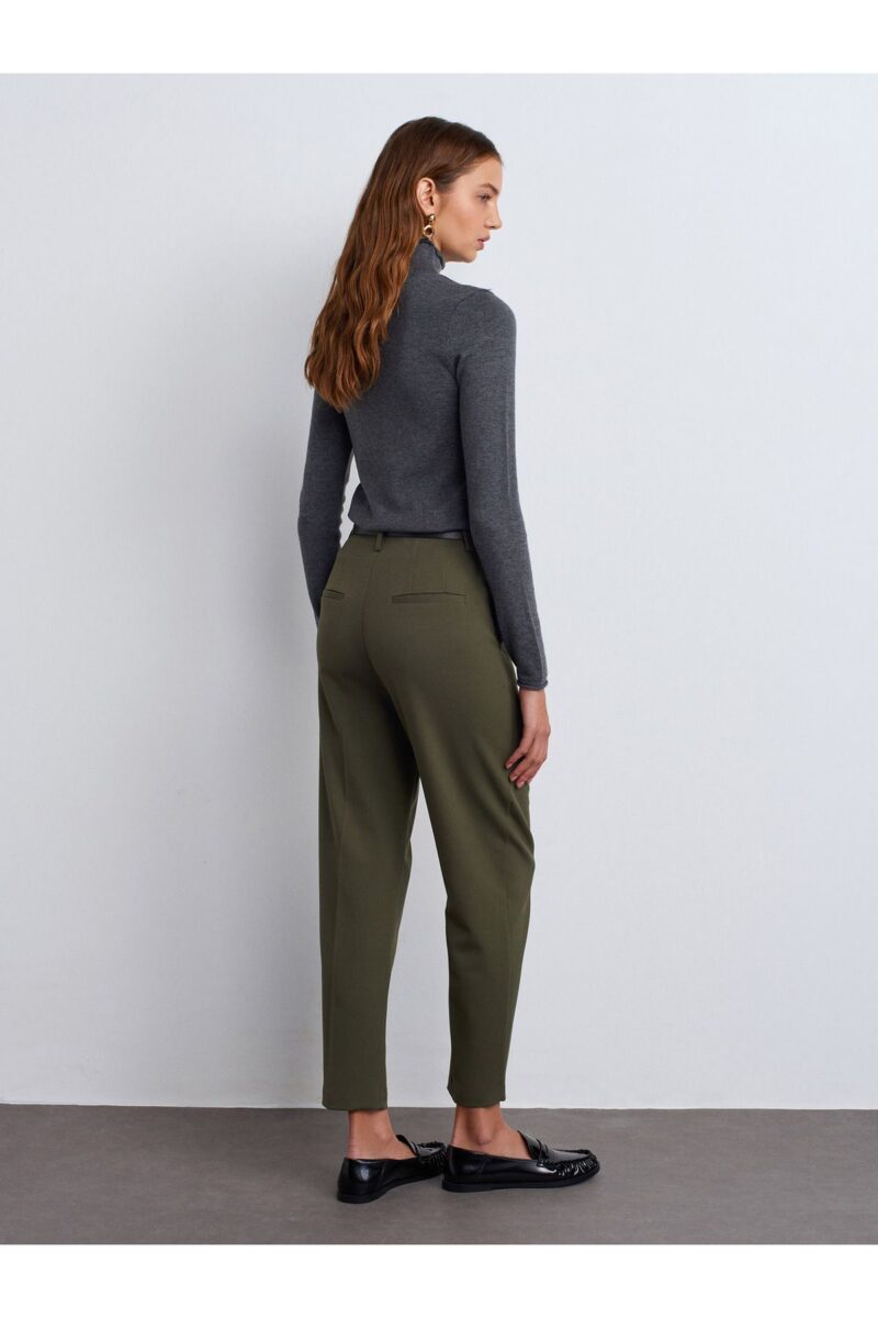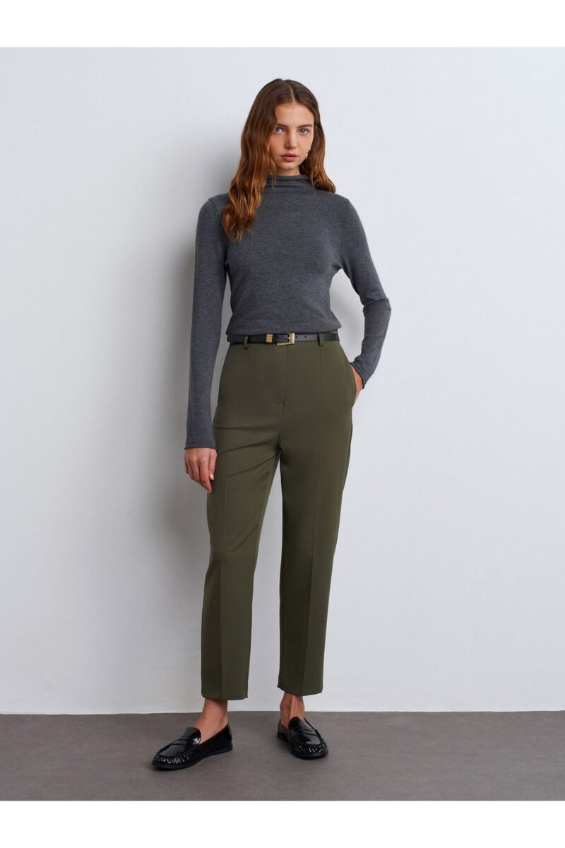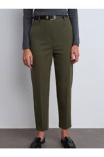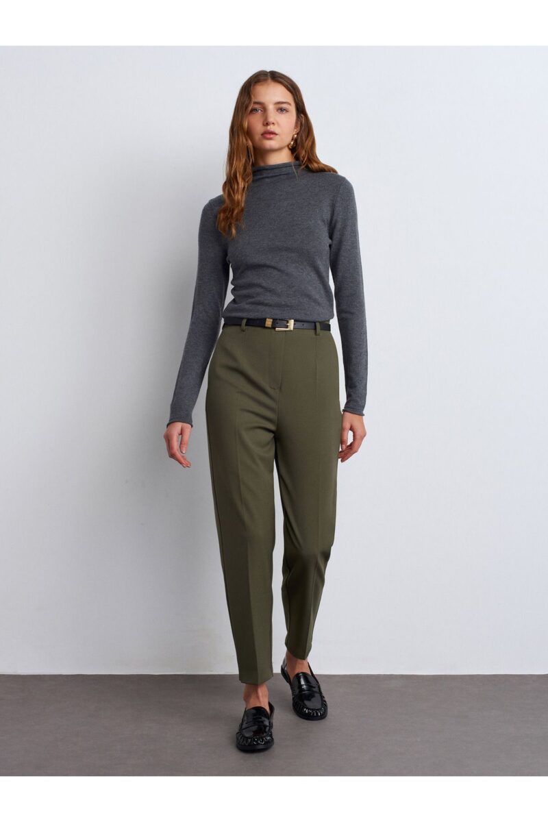 Dilvin 71293 Kemerli Yüksek Bel Pantolon-Yeşil