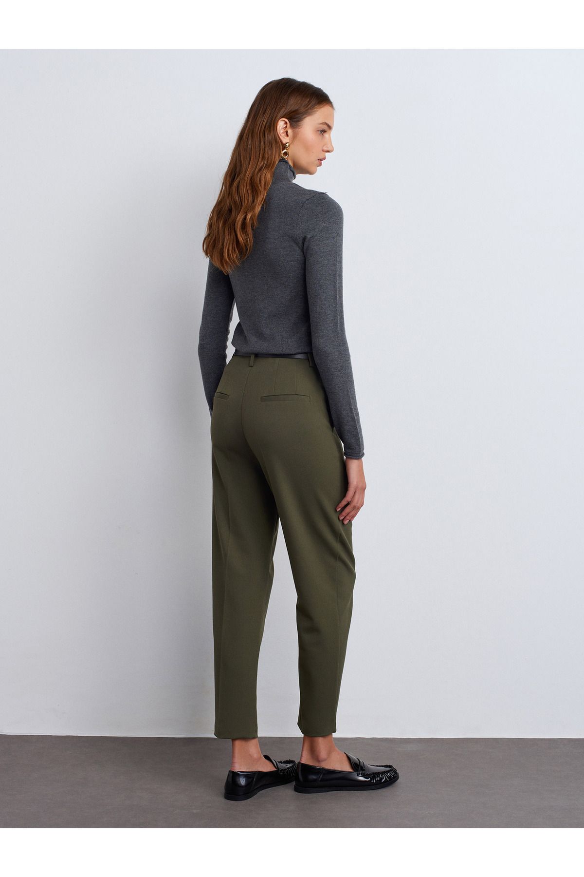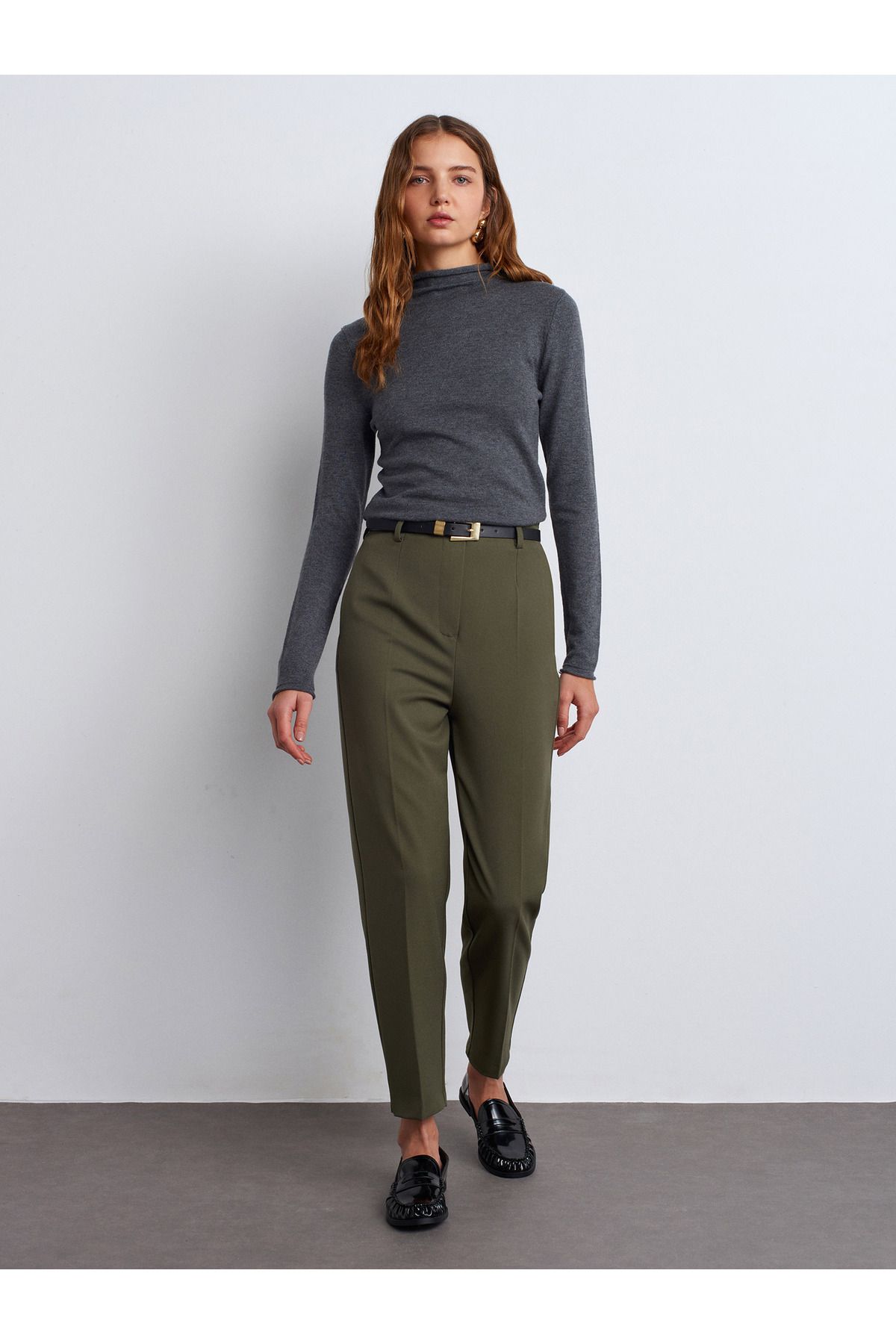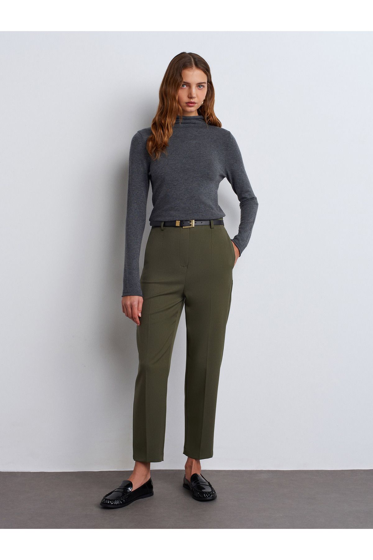 🛍 Dilvin 71293 Kemerli Yüksek Bel Pantolon-Yeşil