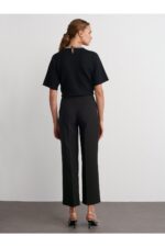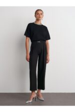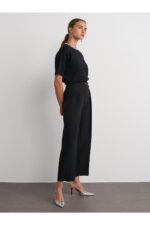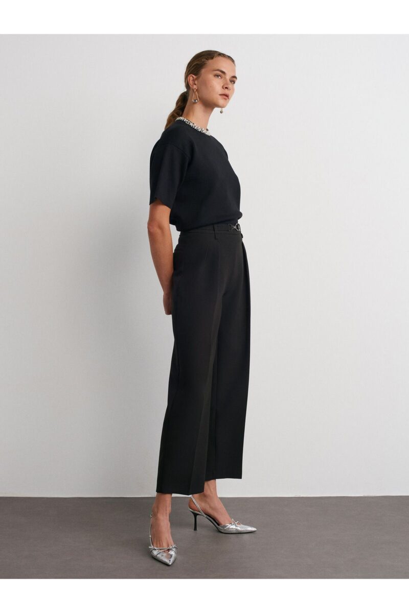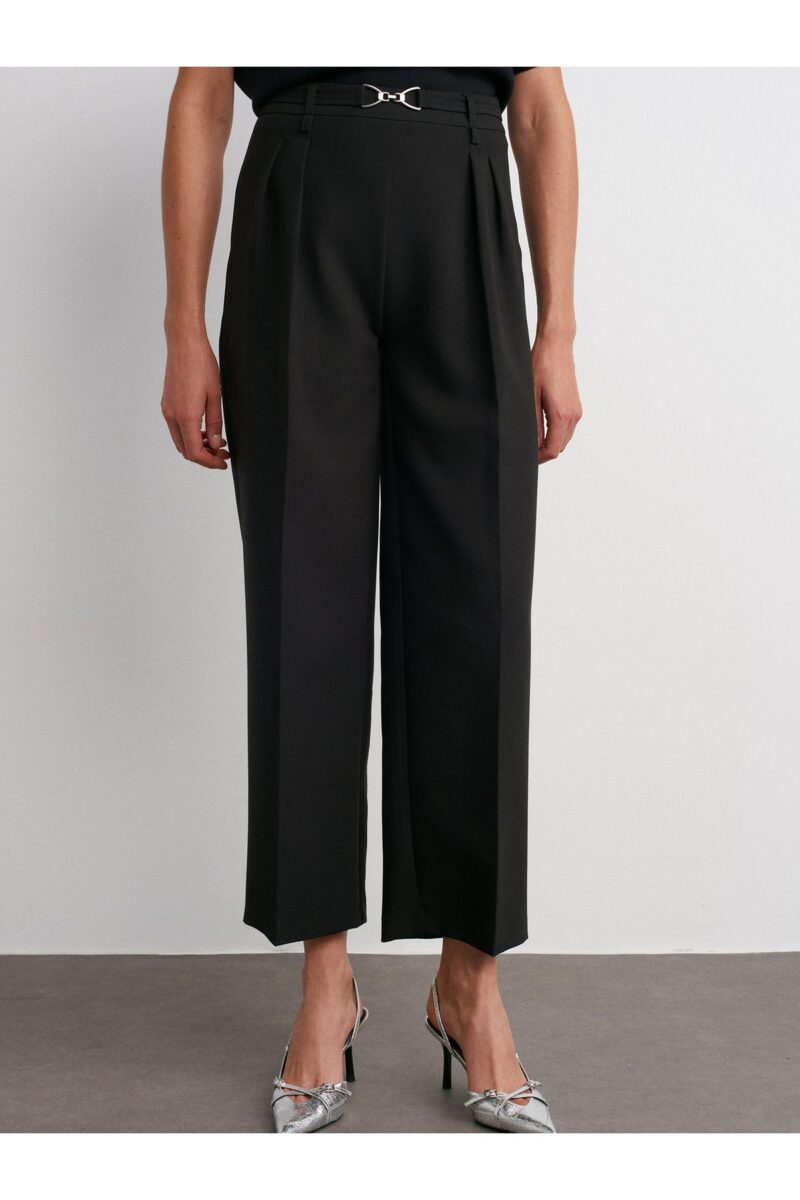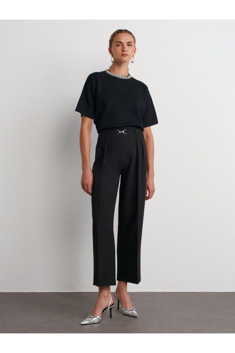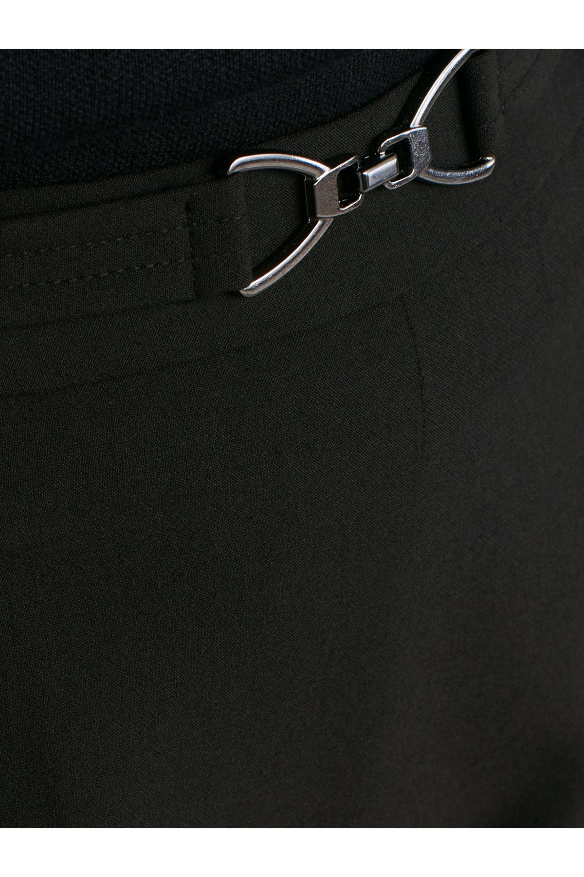 🛍 Dilvin 71558 Metal Aksesuarlı Yüksek Bel Pantolon-Siyah