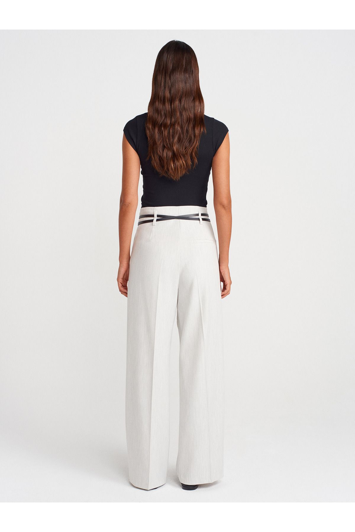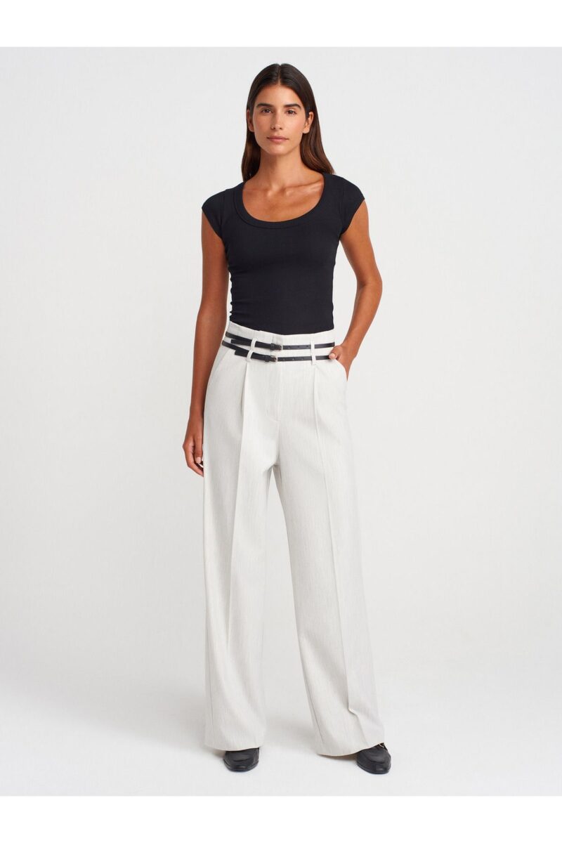 🛍 Dilvin 71655 Kemerli Yüksek Bel Pantolon-Açık Gri