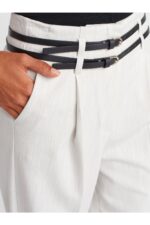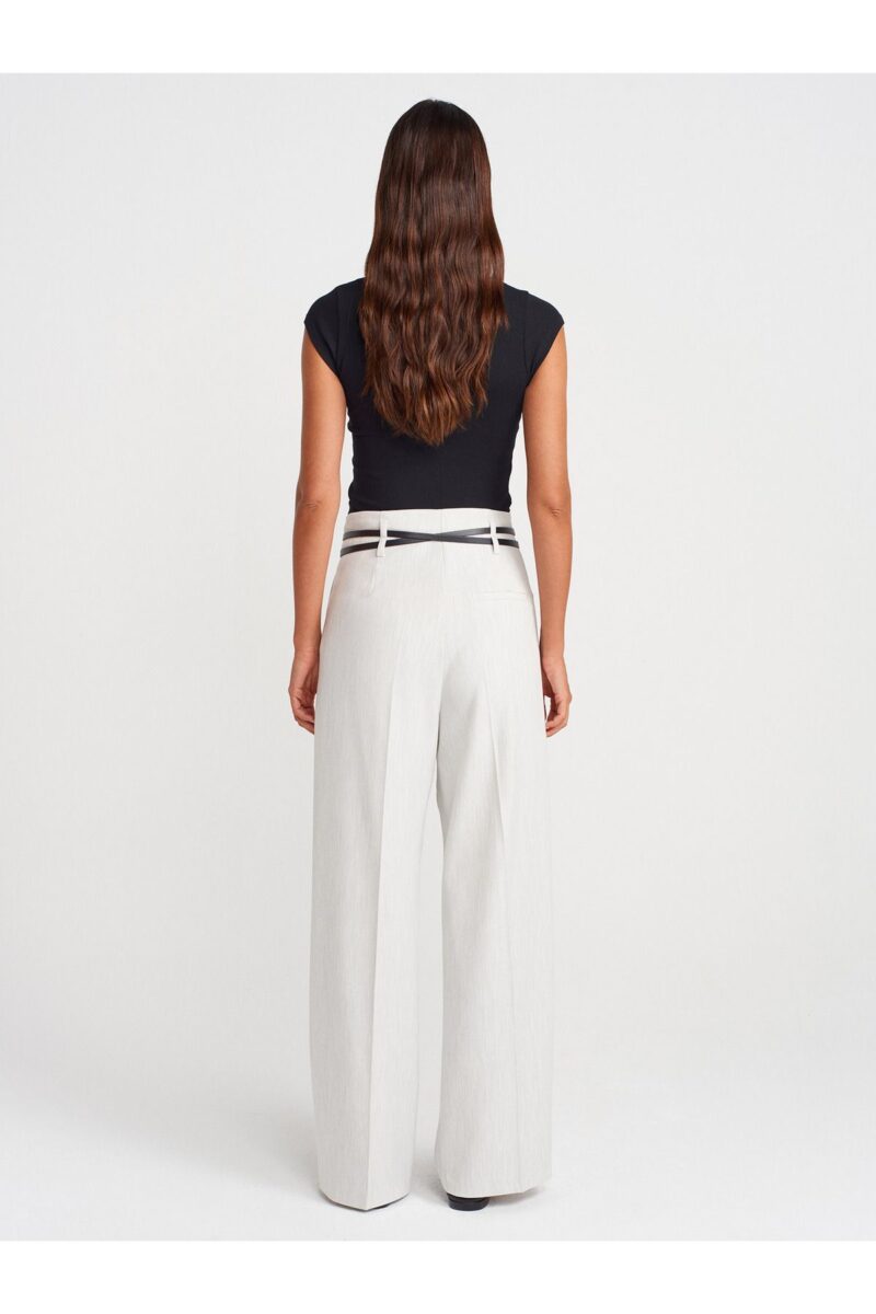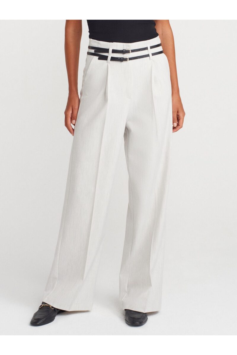 Dilvin 71655 Kemerli Yüksek Bel Pantolon-Açık Gri