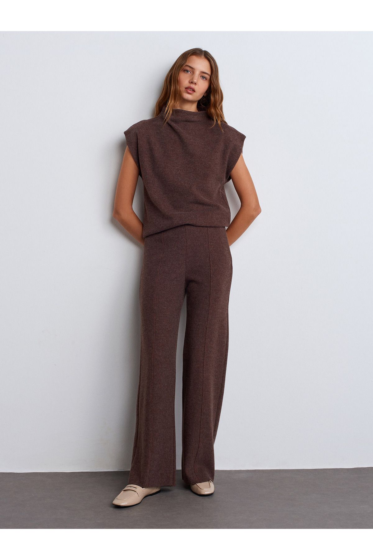 🛍 Dilvin 71819 Yüksek Bel Pantolon-Kahve M.