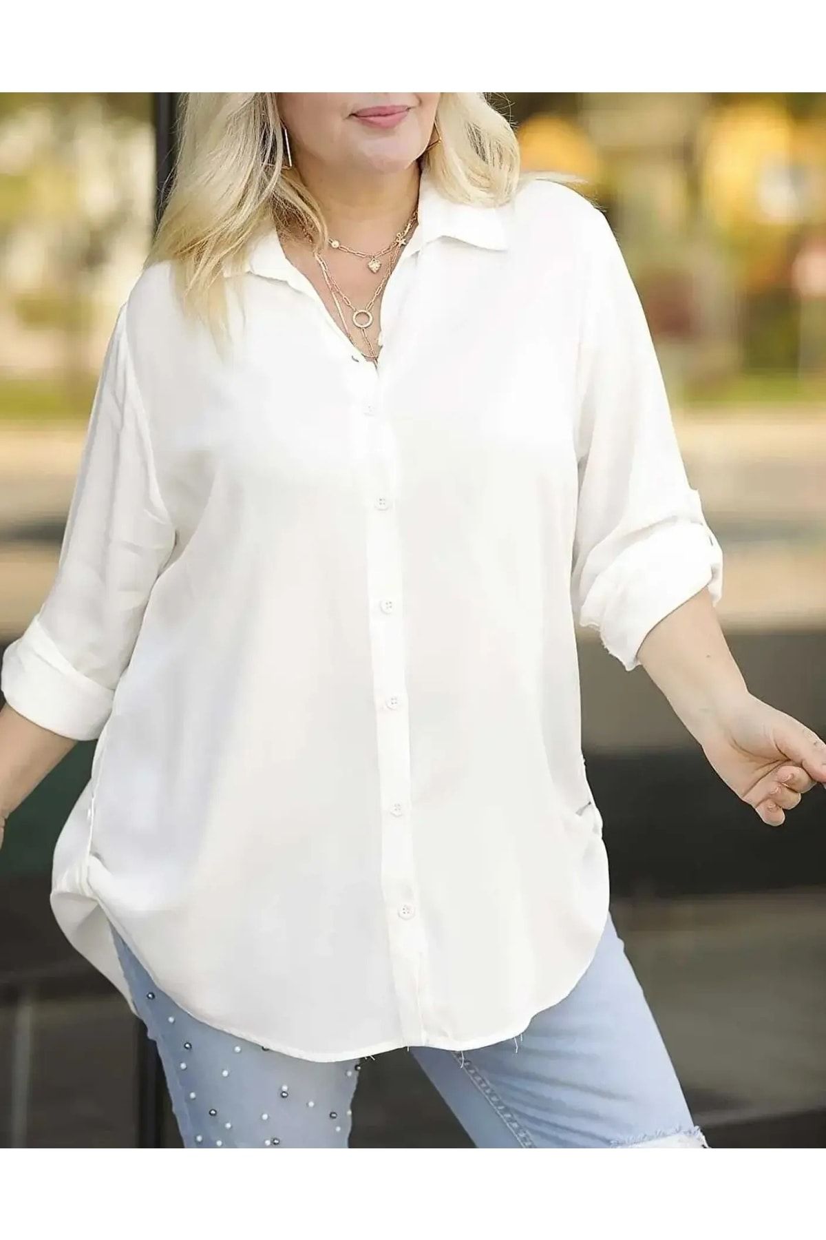 🛍 FOR ESRA BIG TREND Kadın Büyük Beden Düz Renk Kol Ve Yan Katlamalı Dokuma Viskon Gömlek
