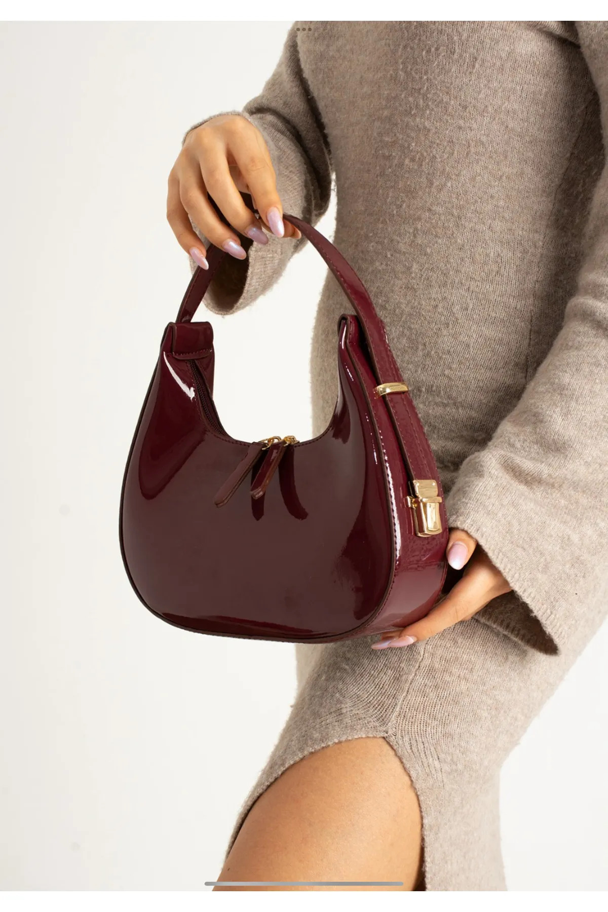 🛍 چرم اختراع زنانه سورلیس باگت کیف گیلاسی با بند زیپ بسته کیف شانه با جزئیات
