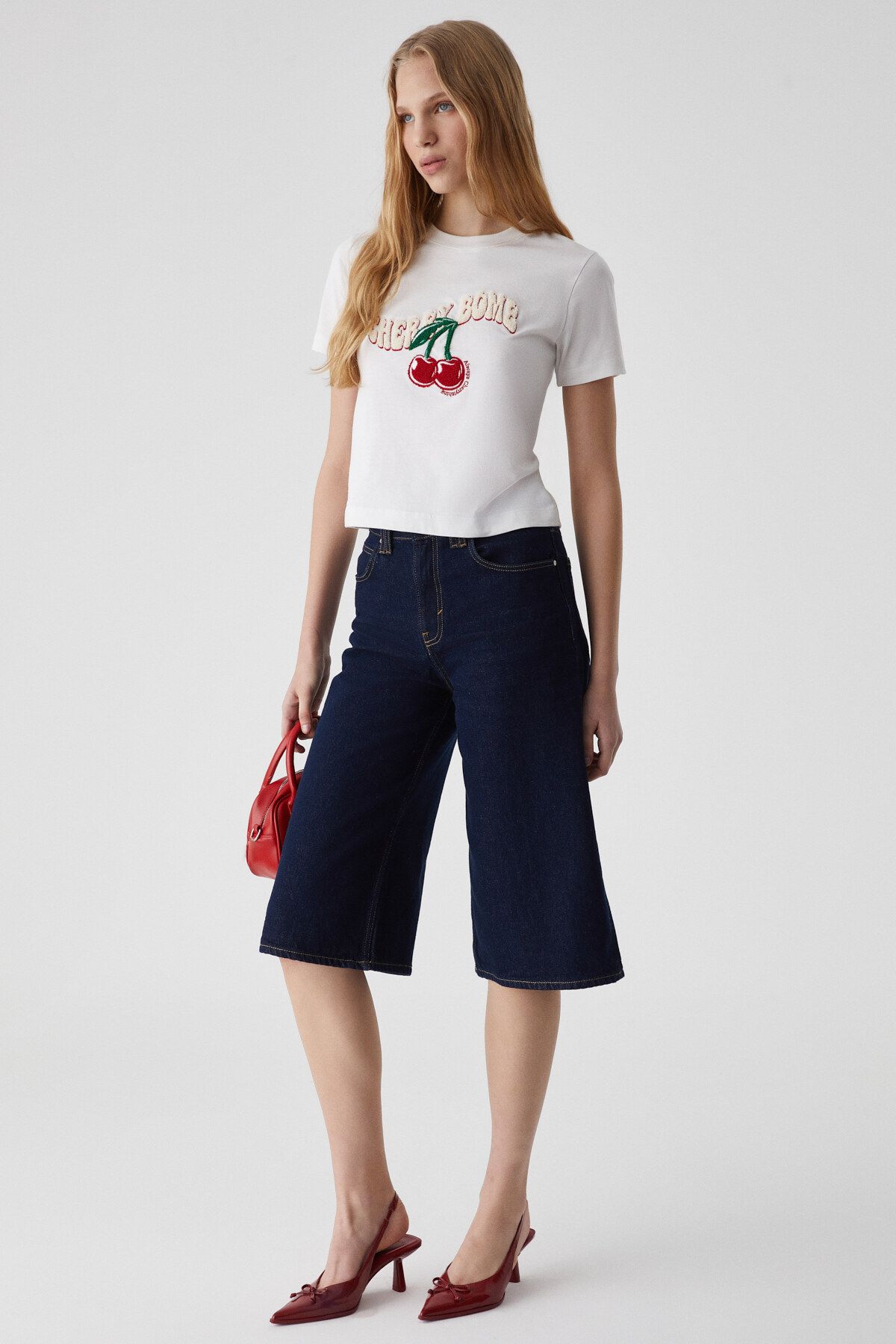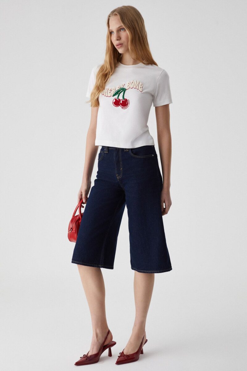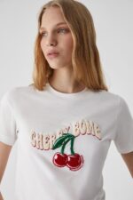 GRIMELANGE LAZZIAR Kadın Oversize Bisiklet Yaka Beyaz T-Shirt