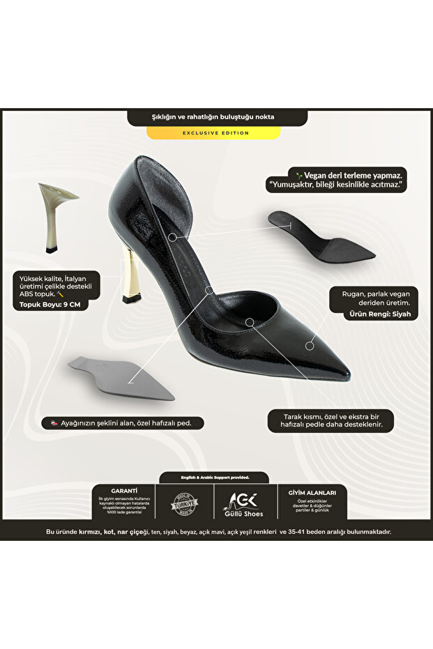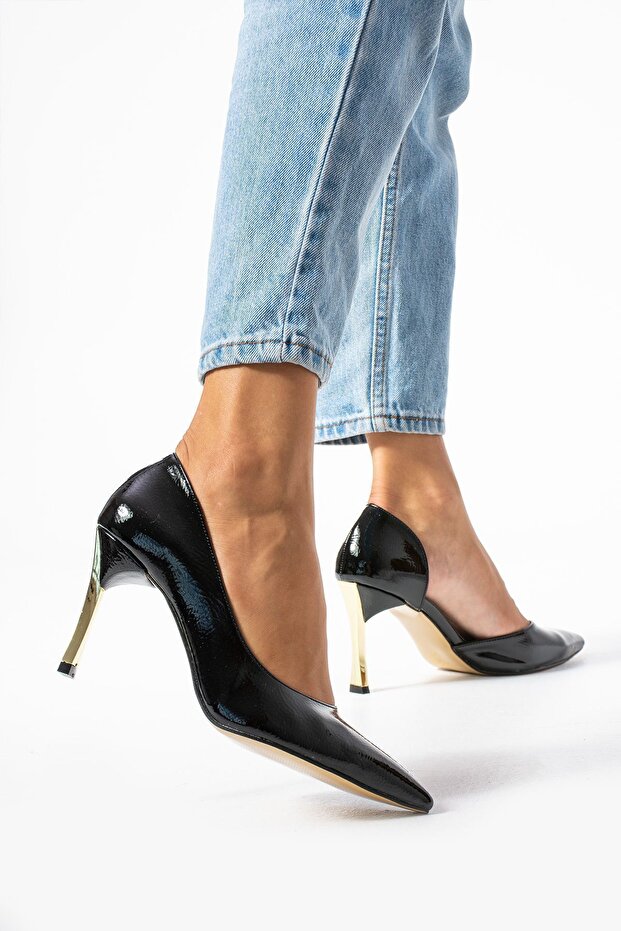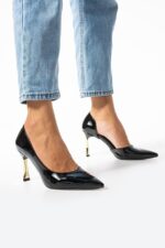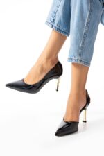 🛍 Güllü Shoes Kadın Topuklu Ayakkabı Siyah Stiletto Konforlu Günlük Ve Özel Günler Için Rugan Vegan Deri