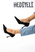 Güllü Shoes Kadın Topuklu Ayakkabı Siyah Stiletto Konforlu Günlük Ve Özel Günler Için Rugan Vegan Deri