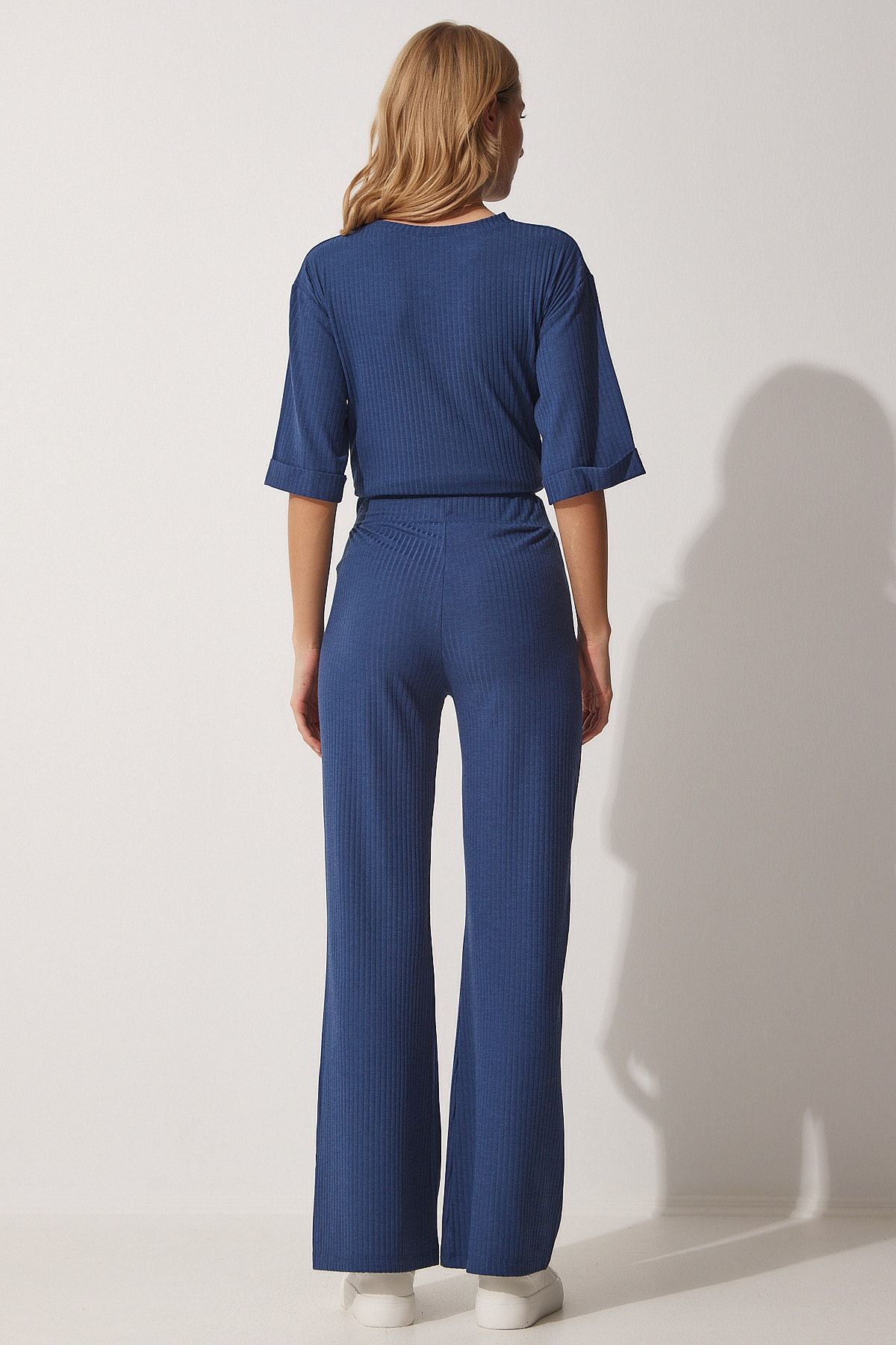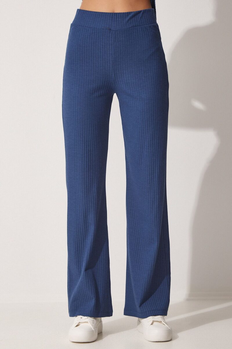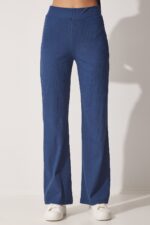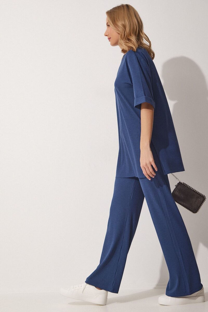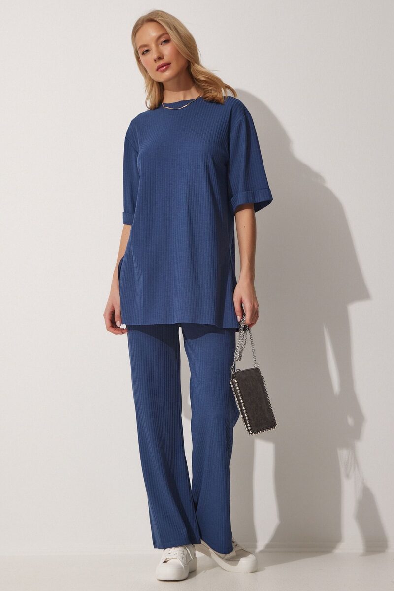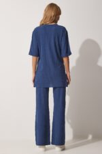 🛍 Happiness İstanbul Kadın İndigo Mavi Fitilli Esnek Örme Alt Üst Takım KH00086