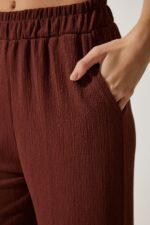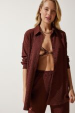 Happiness İstanbul Kadın Kahverengi Rahat Örme Gömlek Pantolon Takım KH00090