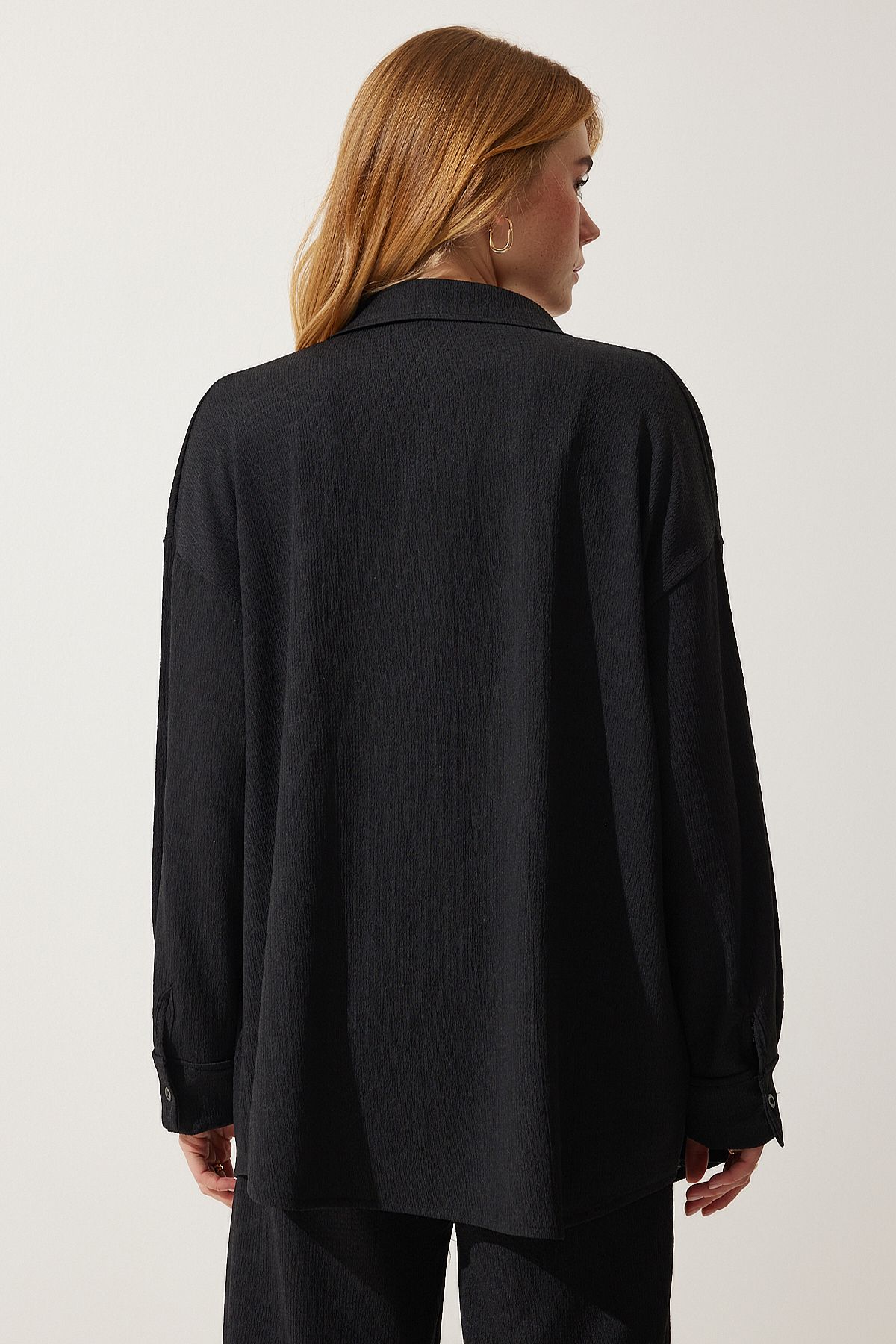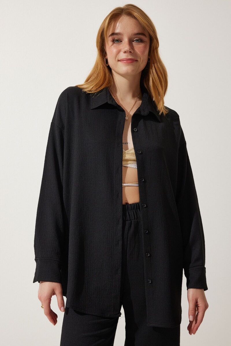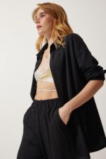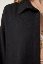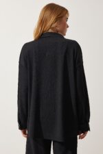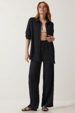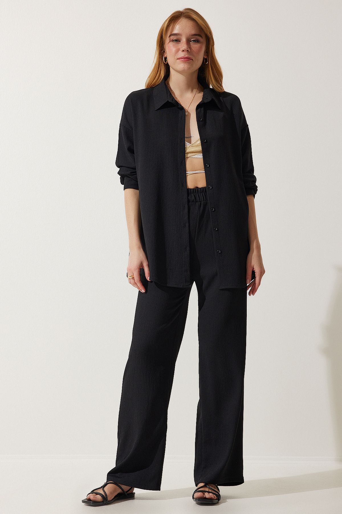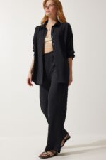 🛍 Happiness İstanbul Kadın Siyah Rahat Örme Gömlek Pantolon Takım KH00090