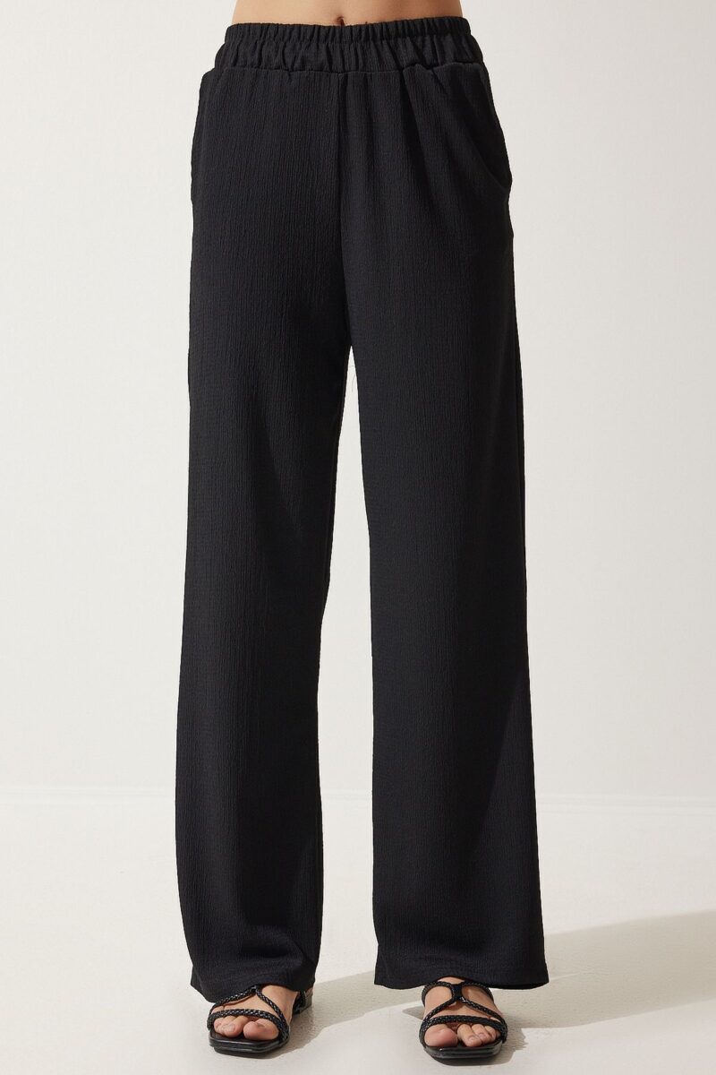 Happiness İstanbul Kadın Siyah Rahat Örme Gömlek Pantolon Takım KH00090