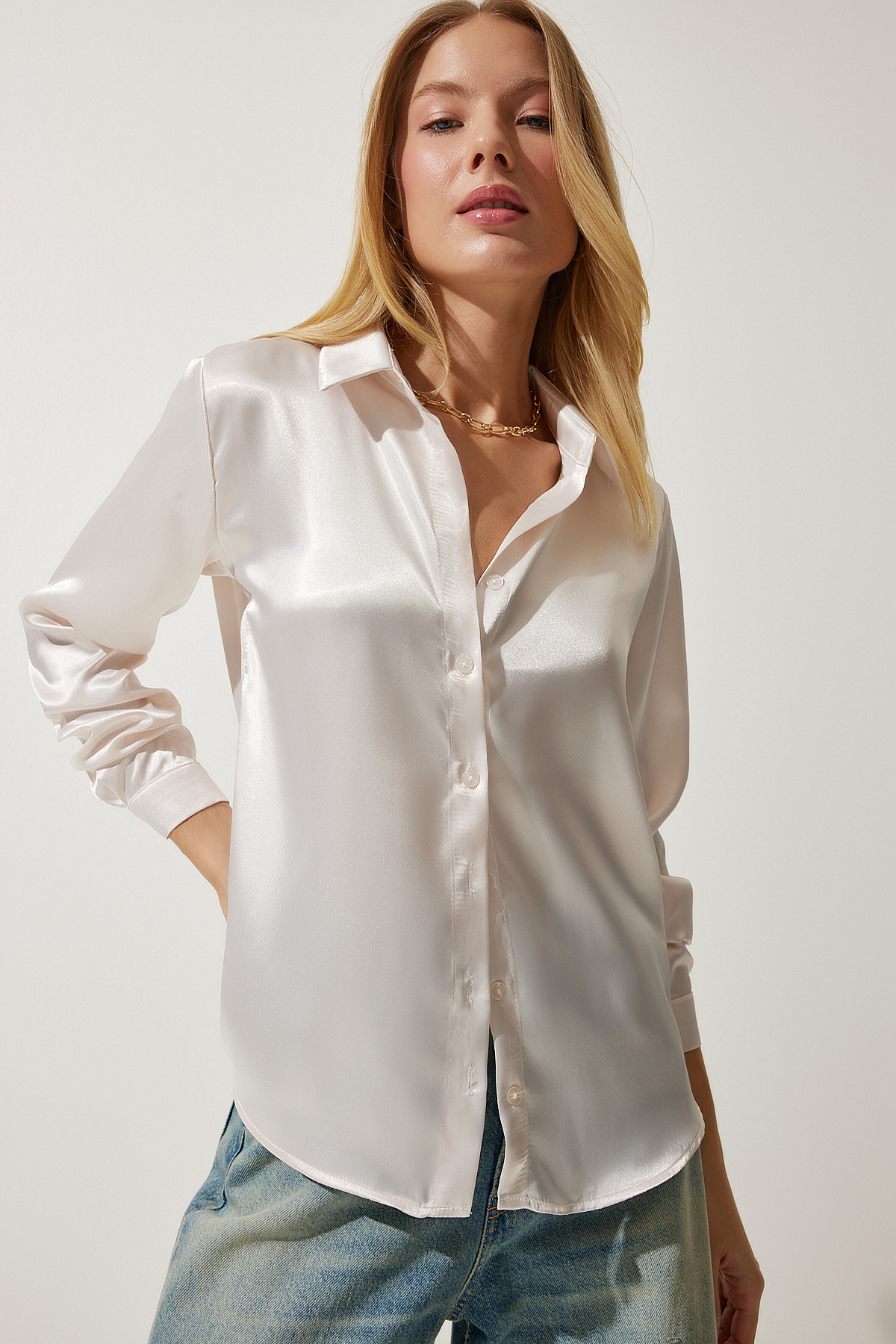 HappinessIstanbul Kadin Krem Hafif Dokumlu Saten Yuzeyli Gomlek Dd00990