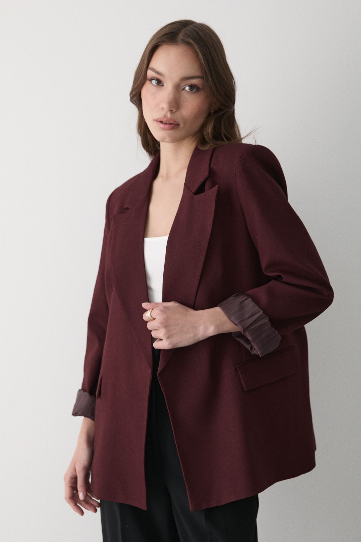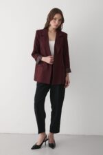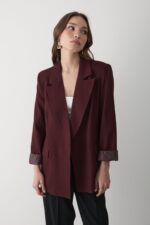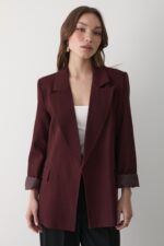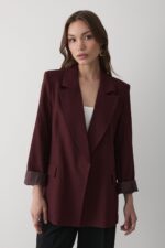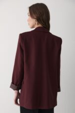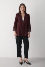 JASTE Kadın Bordo Çizgili Içi Astarlı Kol Detaylı Blazer Ceket