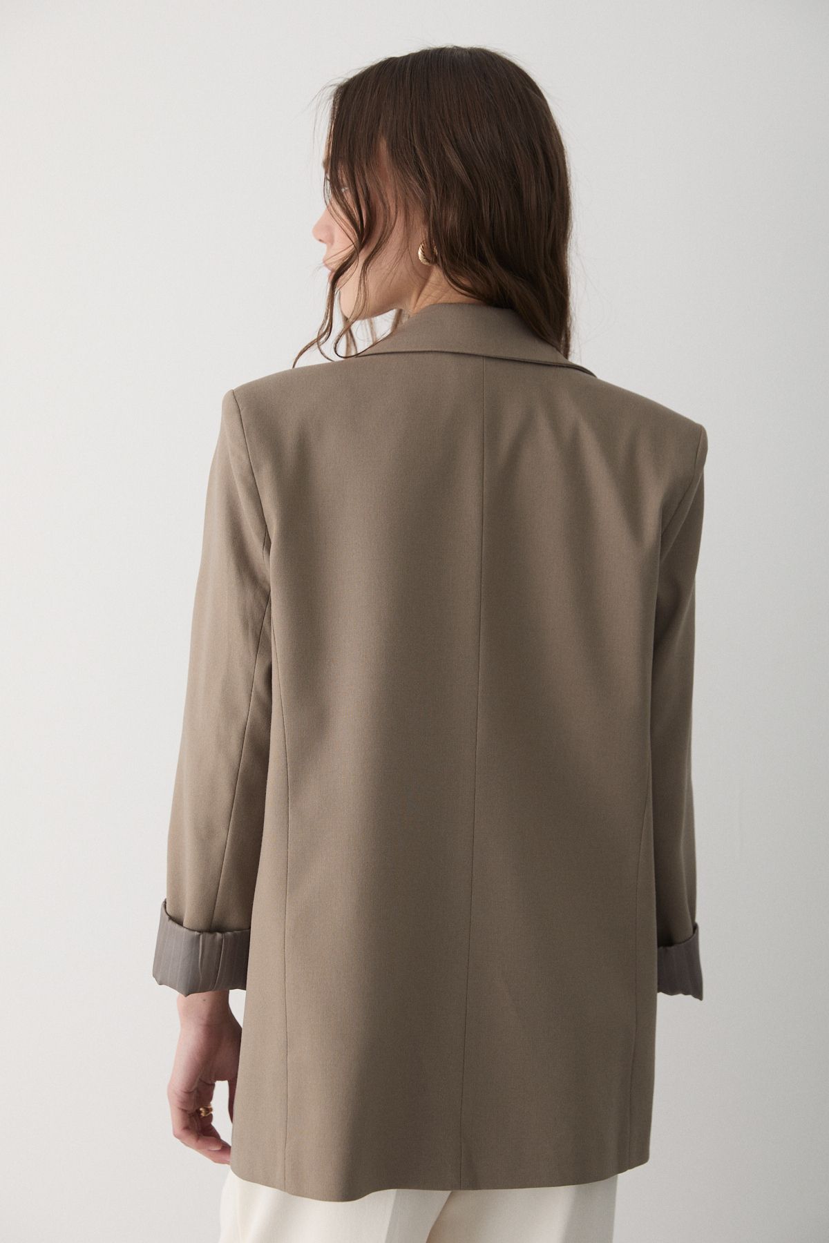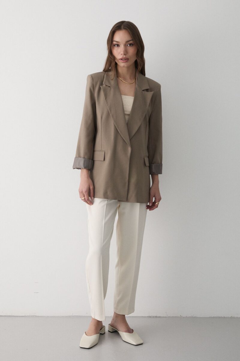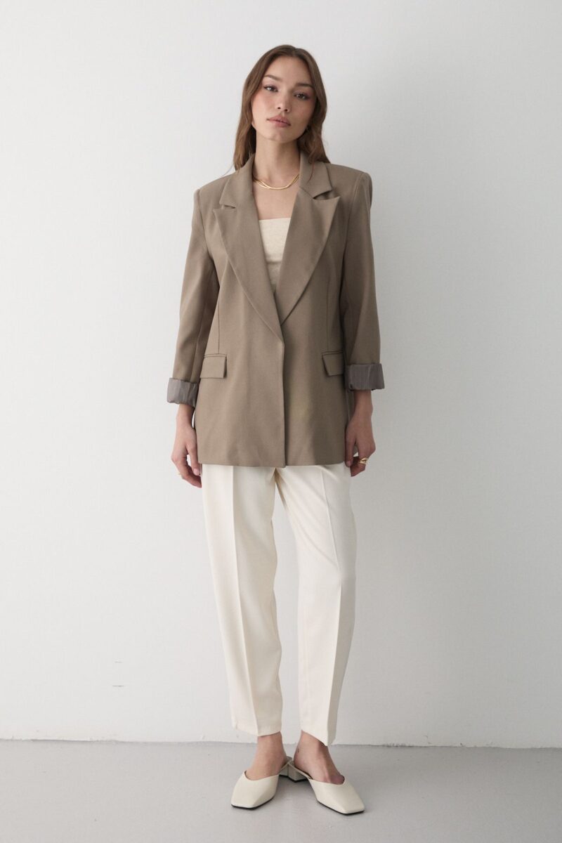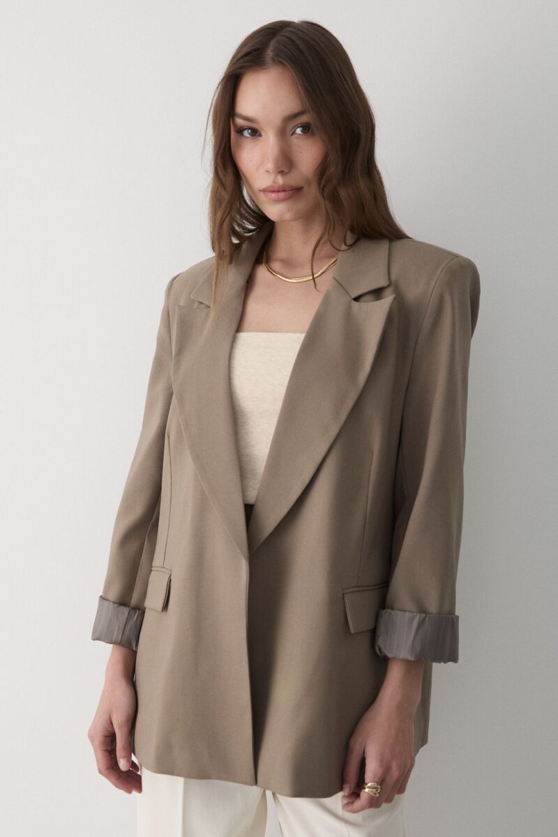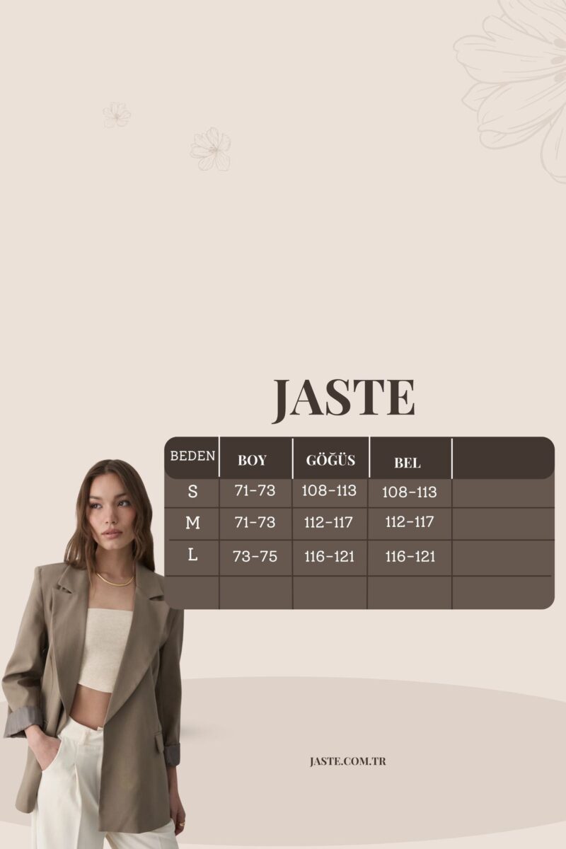 🛍 JASTE Kadın Haki Çizgili Içi Astarlı Kol Detaylı Blazer Ceket