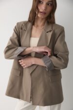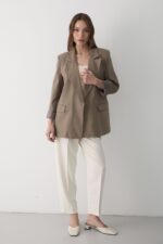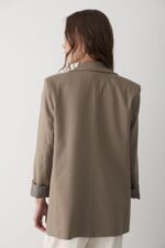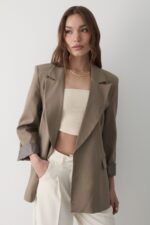 JASTE Kadın Haki Çizgili Içi Astarlı Kol Detaylı Blazer Ceket