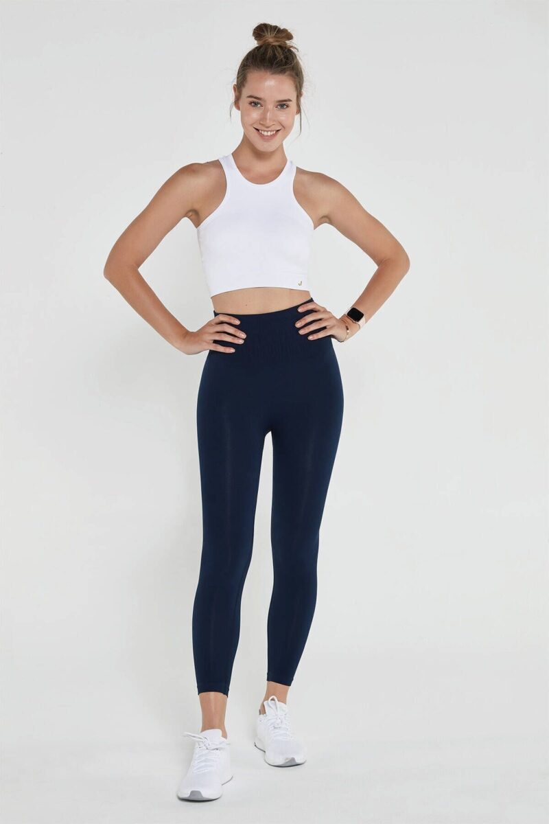 🛍 Jerf Luz Kemeri Rip Detaylı Yüksek Bel, Sıkılaştırıcı Tayt Lacivert