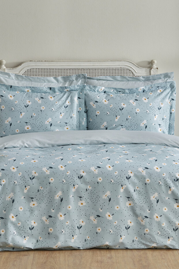 Karaca Home Daisy %100 Pamuk Çift Kişilik Nevresim Takımı Mint Mavi (PP)