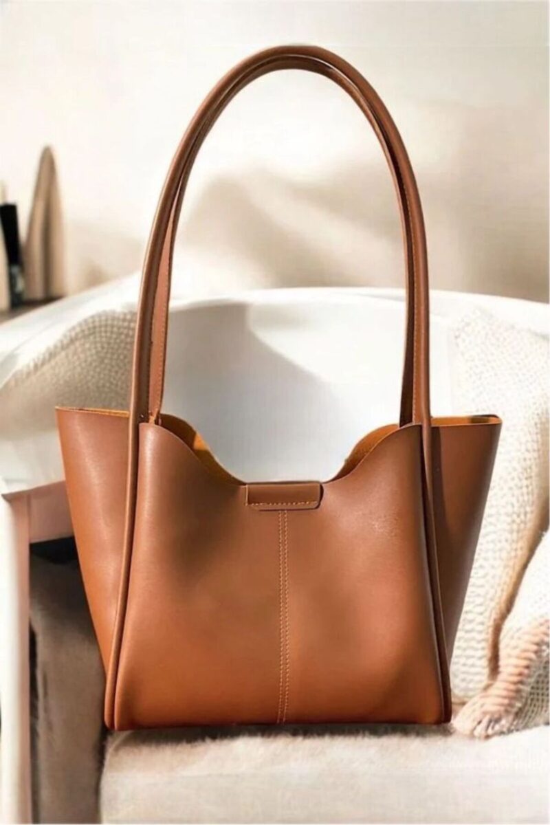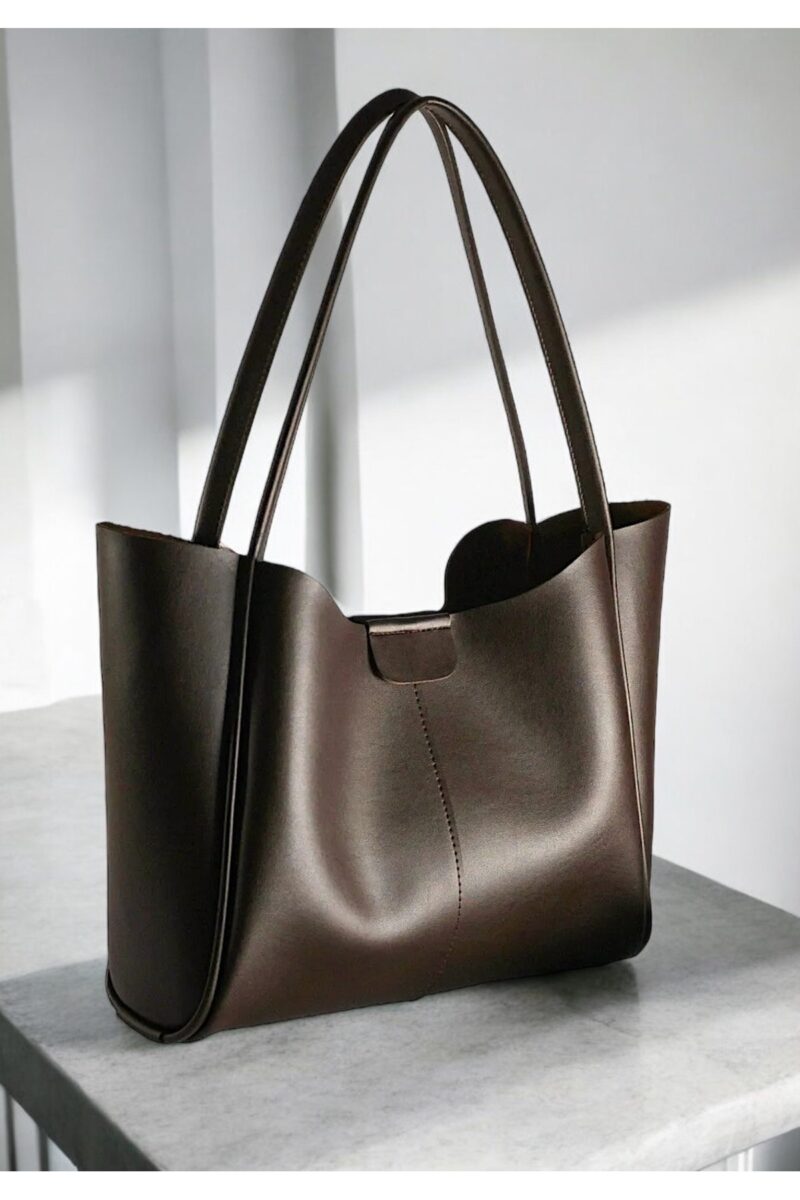 🛍 Katusa Kadın kahve mıknatıslı el ve omuz çantası