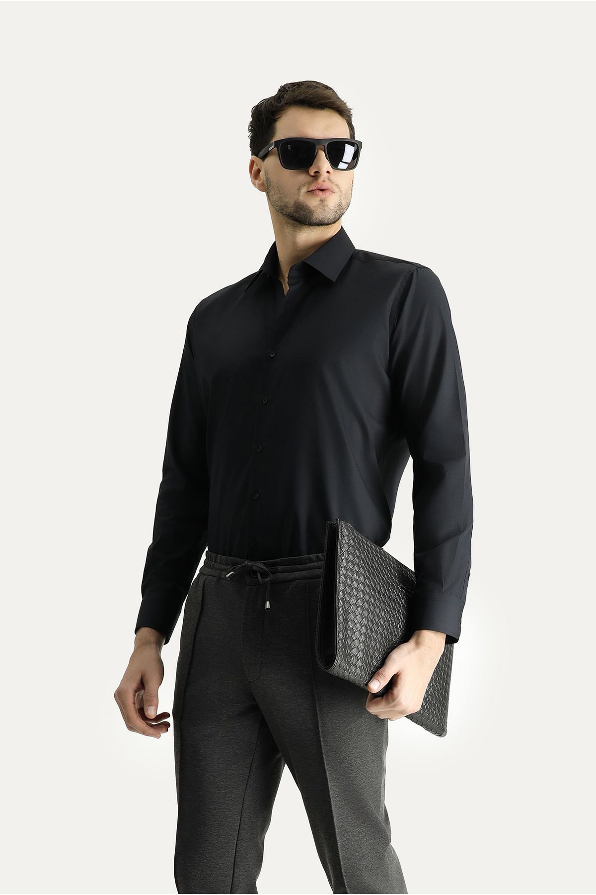 🛍 Kiğılı Uzun Kol Slim Fit Dar Kesim Non Iron Ütü Gerektirmeyen Pamuklu Gömlek