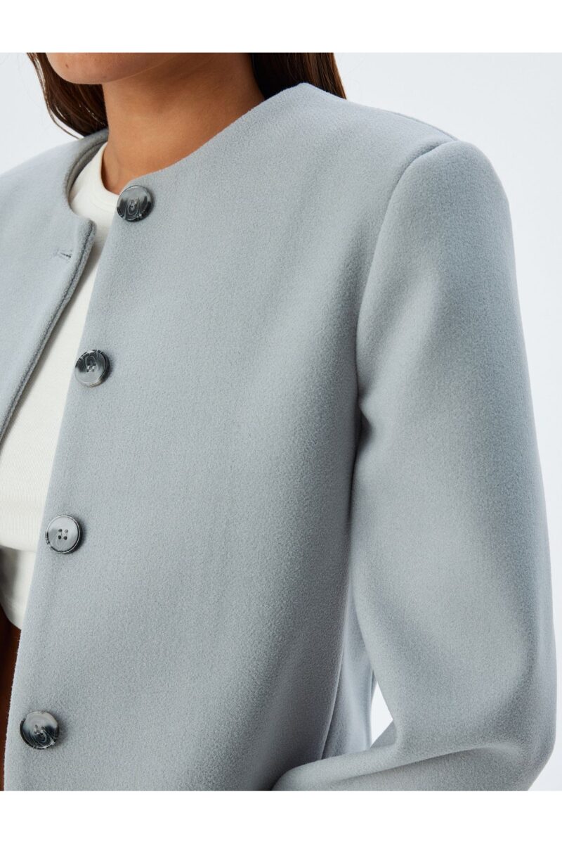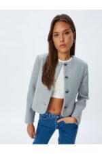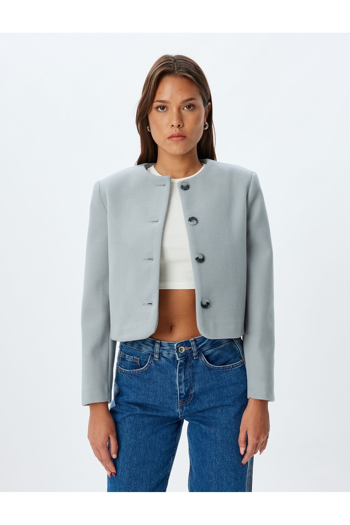 Koton Düğmeli Slim Fit Uzun Kollu Yakasız Crop Ceket