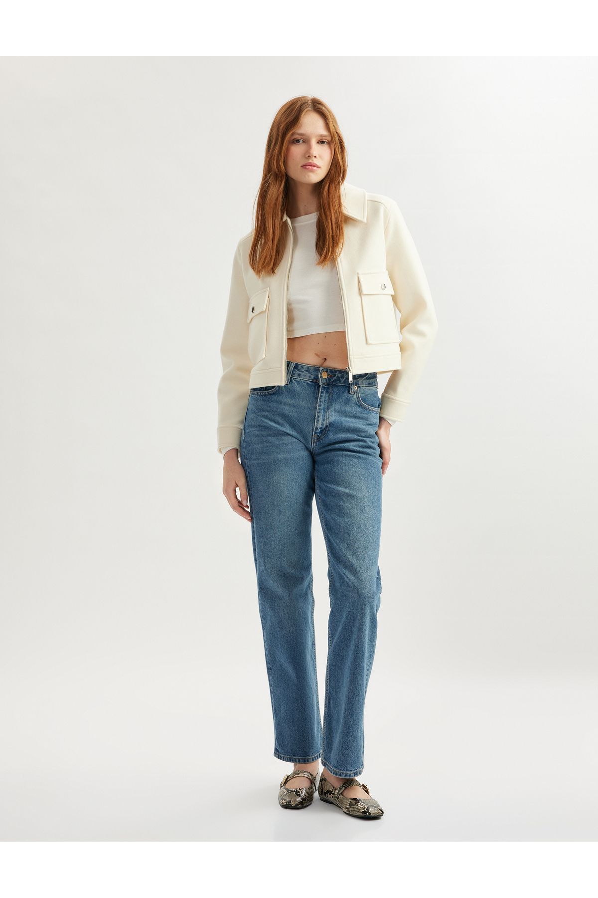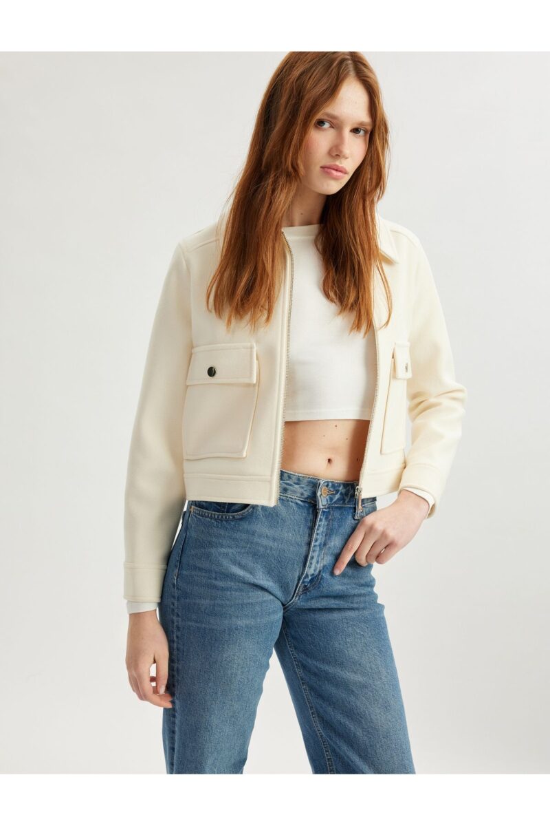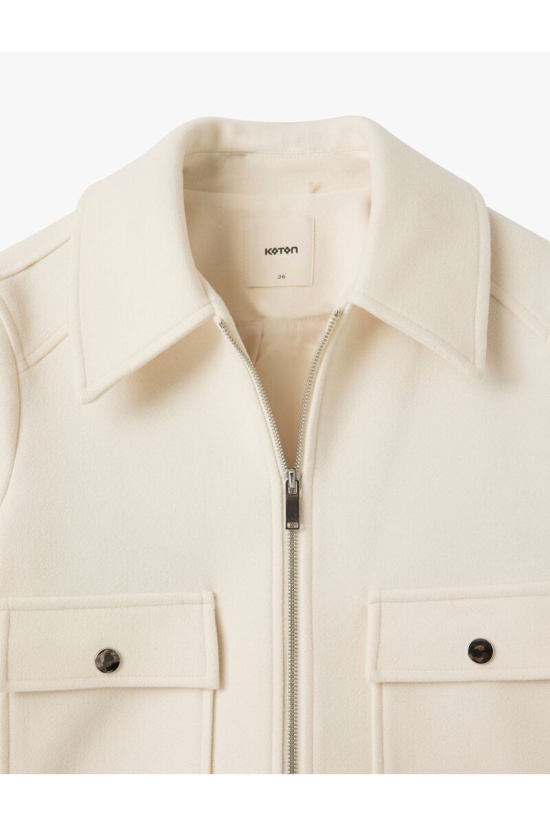 🛍 Koton Kapaklı Cep Detaylı Uzun Kollu Fermuarlı Kruvaze Kısa Ceket