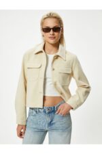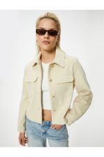 🛍 Koton Kaşe Kısa Ceket Gömlek Yaka Kapaklı Cep Detaylı Gold Düğmeli