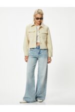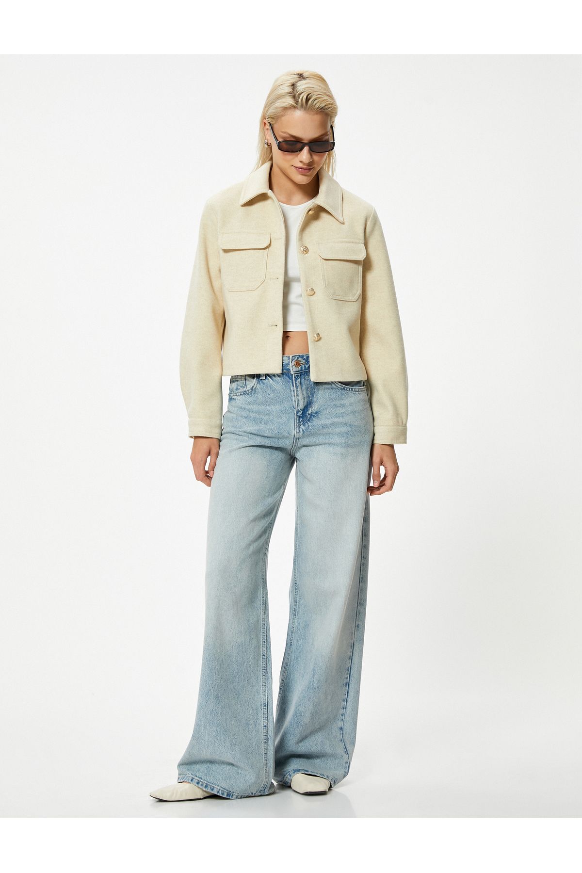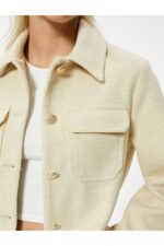 Koton Kaşe Kısa Ceket Gömlek Yaka Kapaklı Cep Detaylı Gold Düğmeli