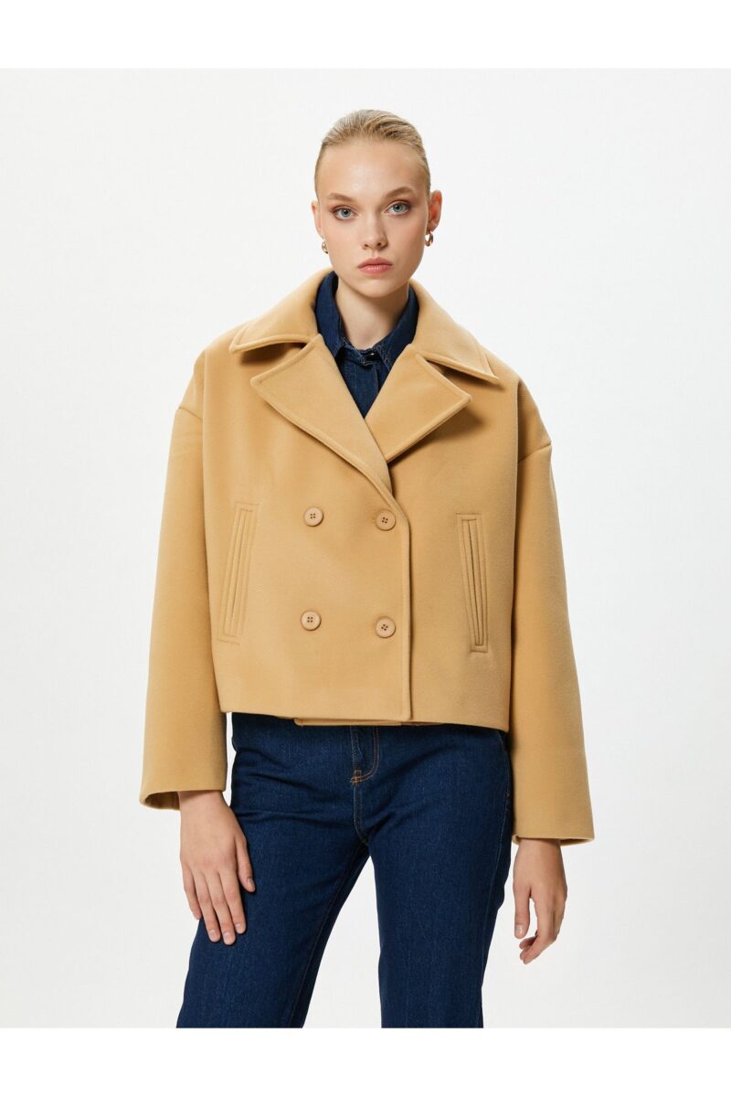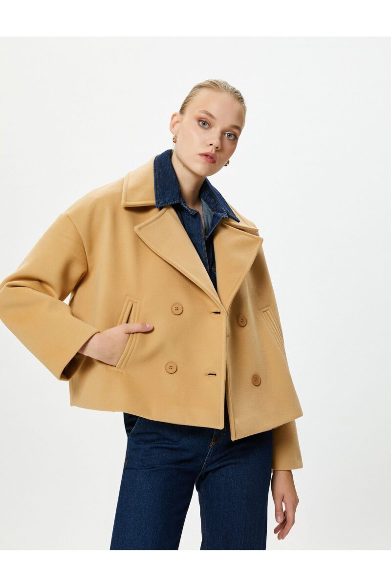 Koton Kısa Kaşe Ceket Kruvaze Düğmeli Cep Detaylı