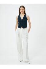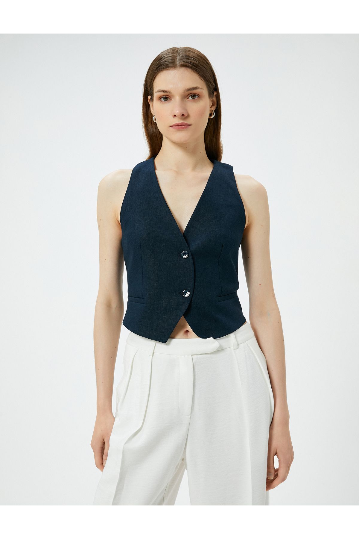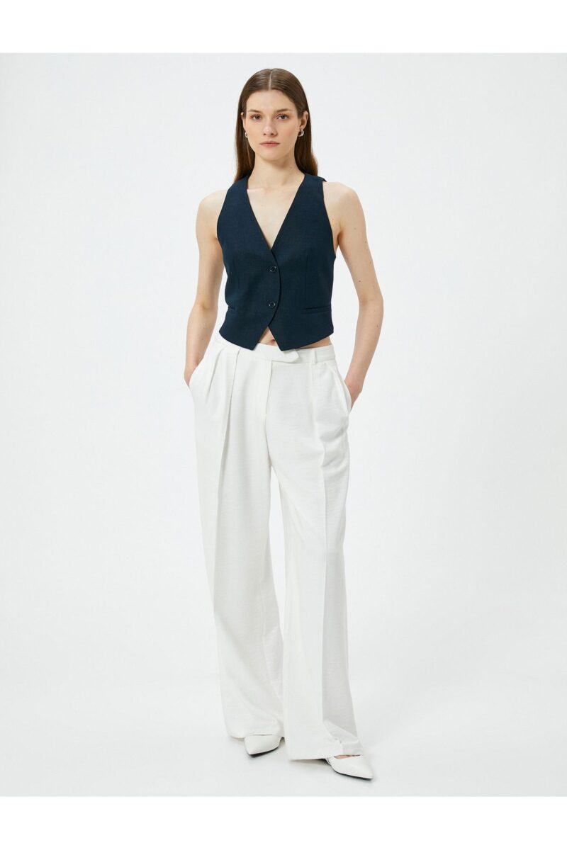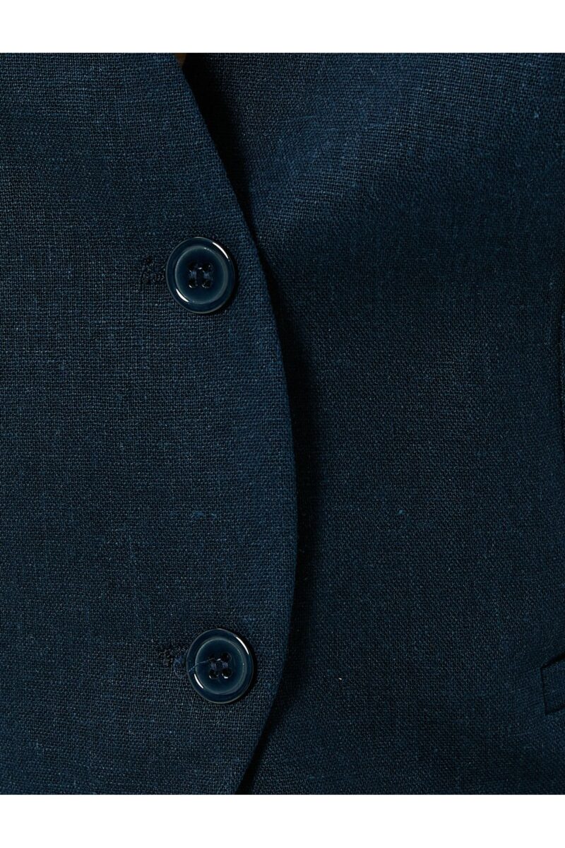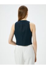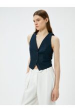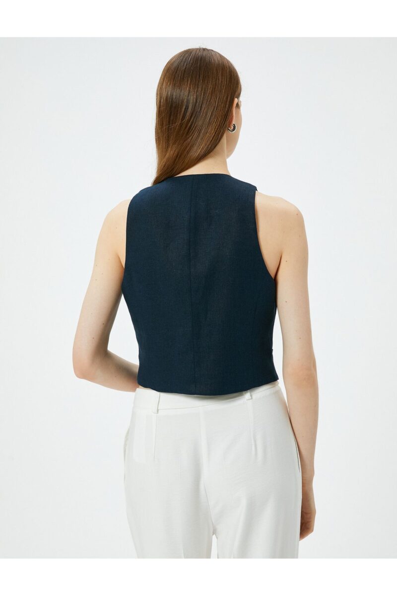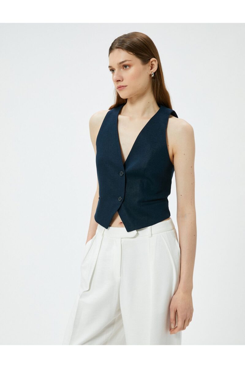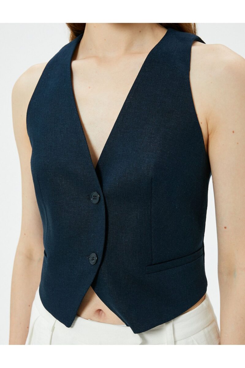 🛍 Koton Kısa Keten Yelek V Yaka Düğmeli Cepli