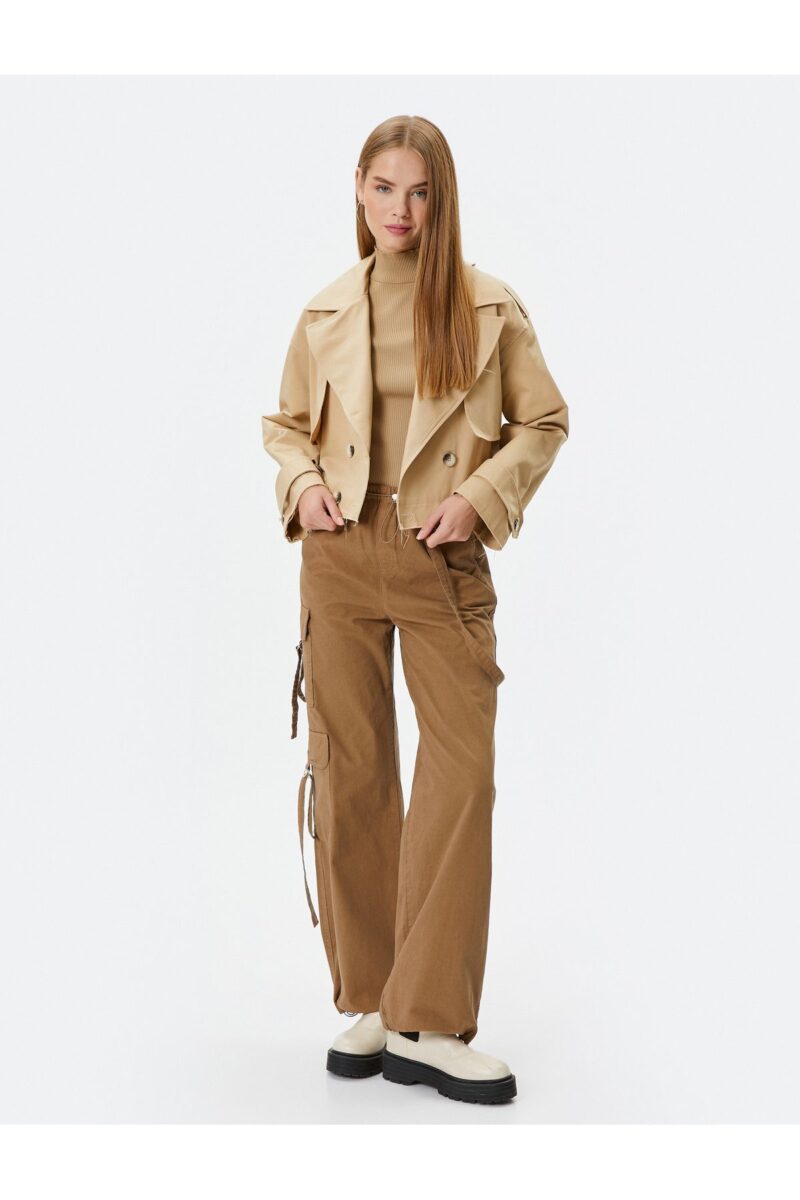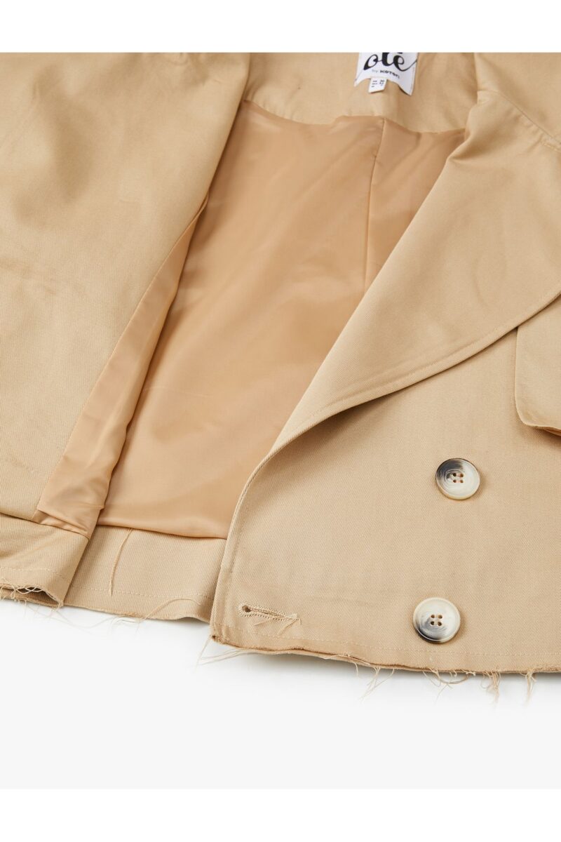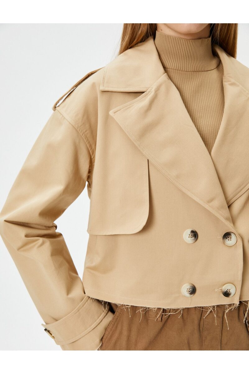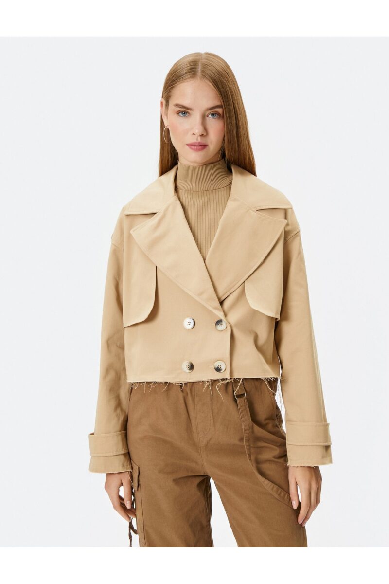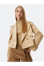 Koton Kısa Trençkot Oversize Kruvaze Önden Rüzgar Kapaklı Manşetleri Bantlı Astarlı