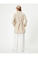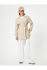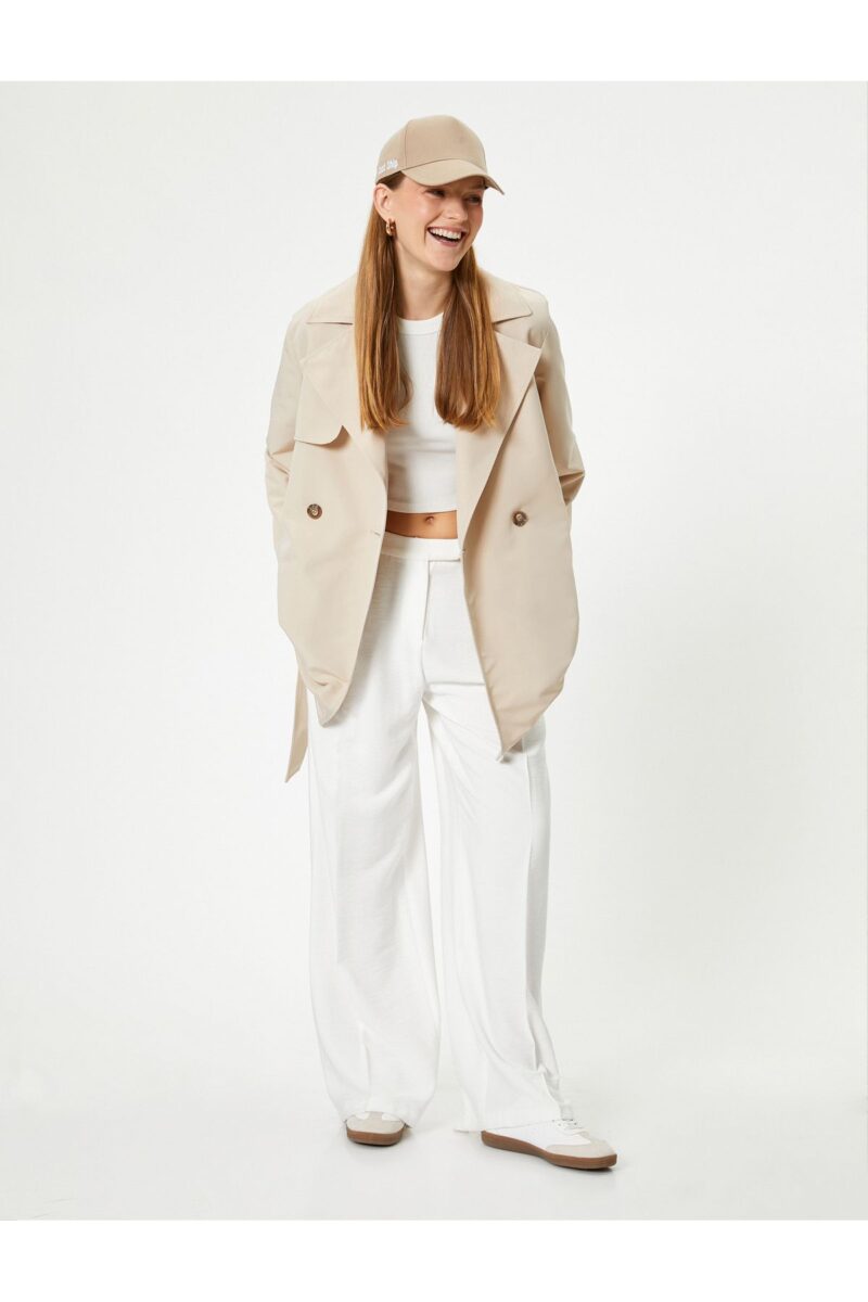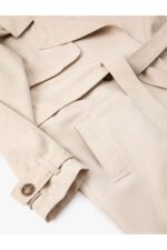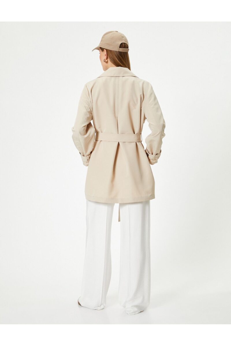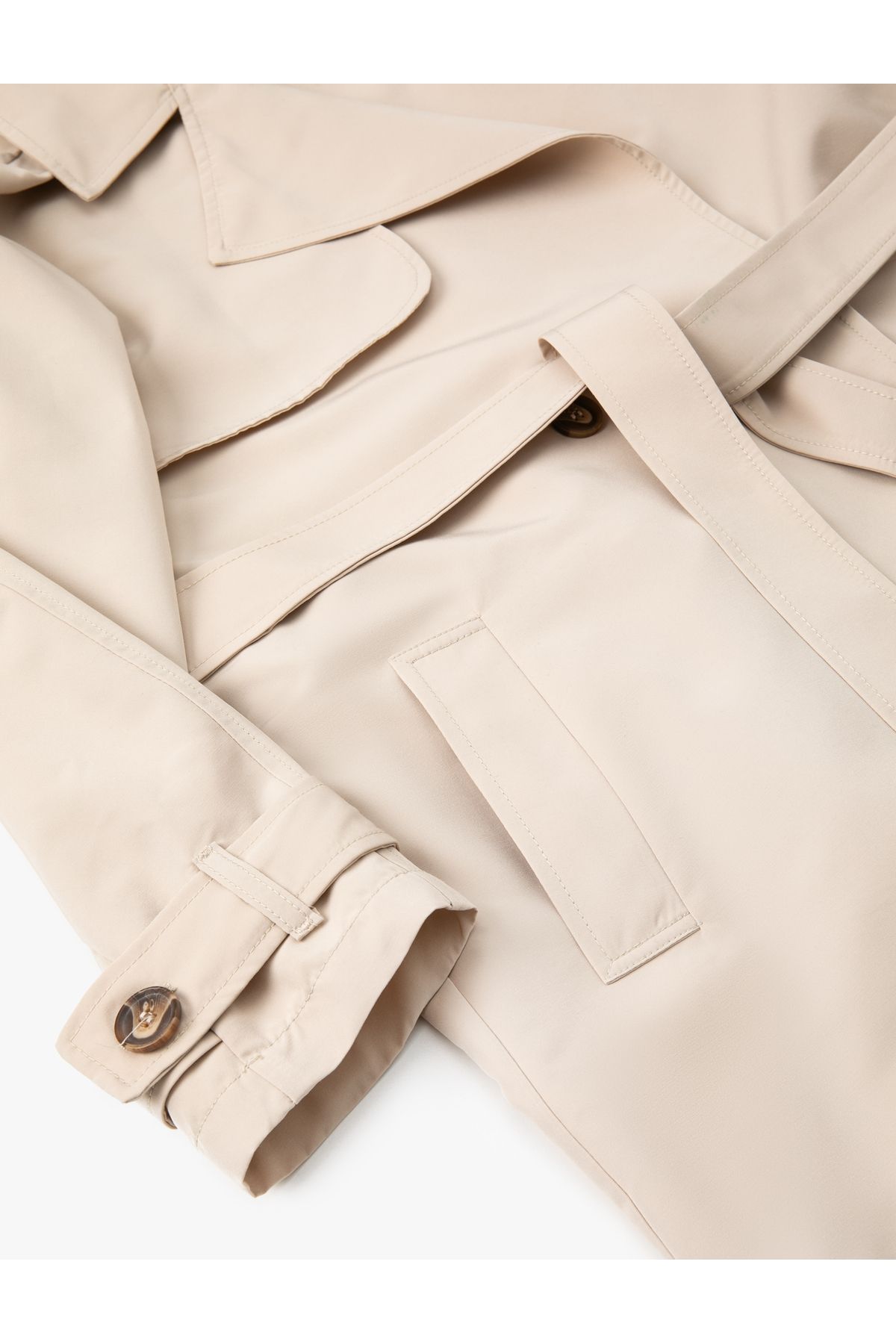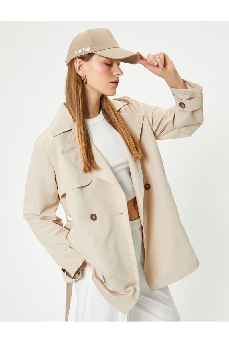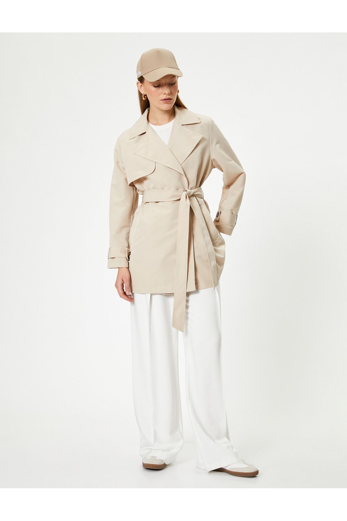 Koton Kısa Trençkot Ters Kruvaze Yaka Kemer Detaylı Cepli Rüzgar Kapaklı