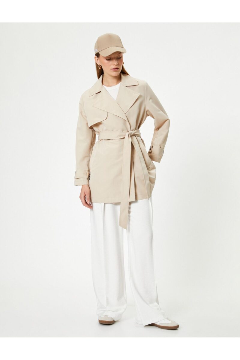 🛍 Koton Kısa Trençkot Ters Kruvaze Yaka Kemer Detaylı Cepli Rüzgar Kapaklı