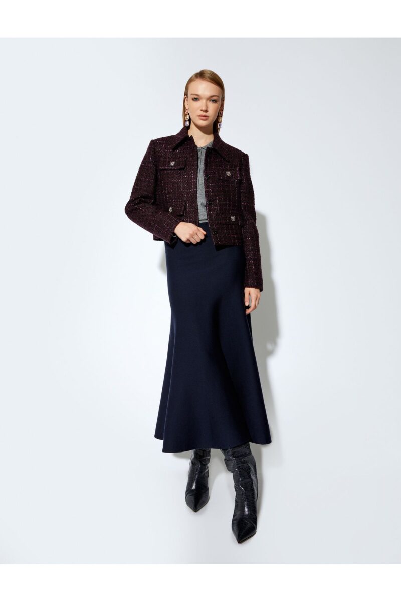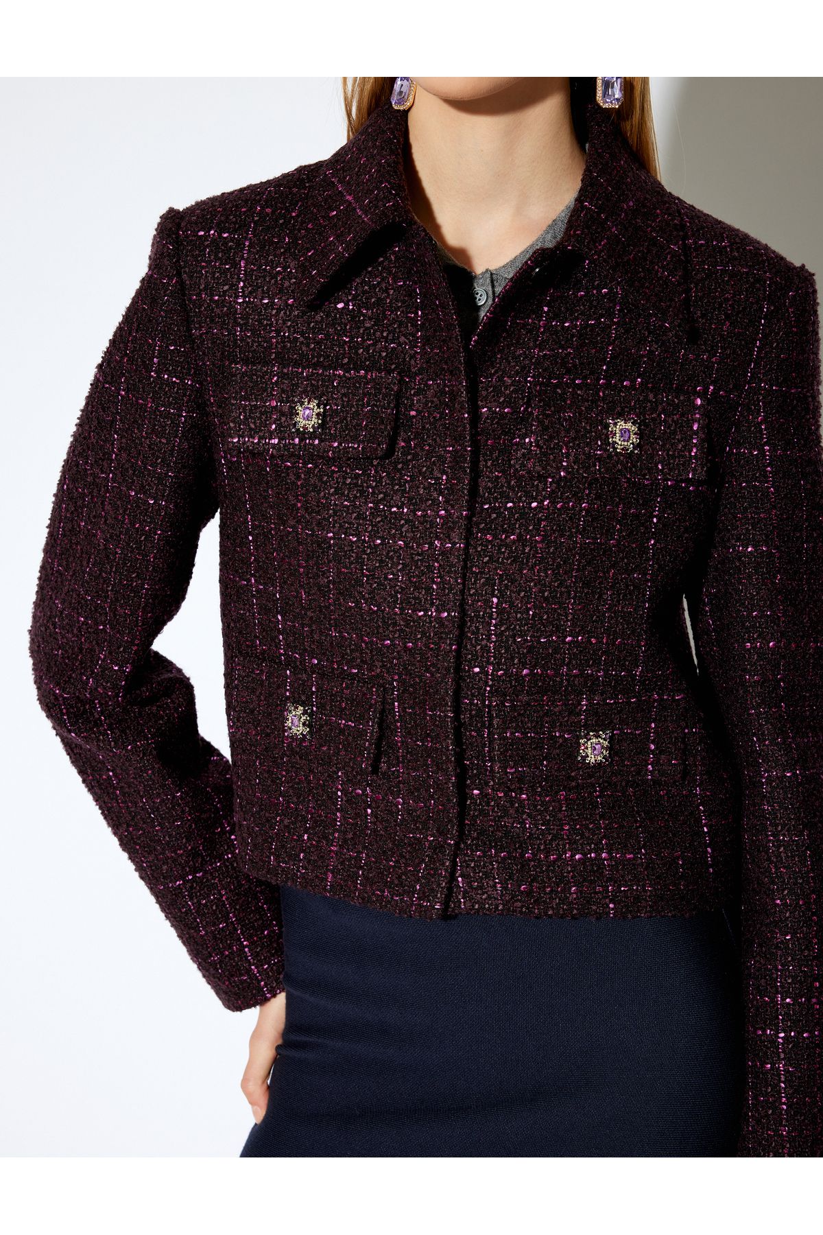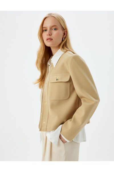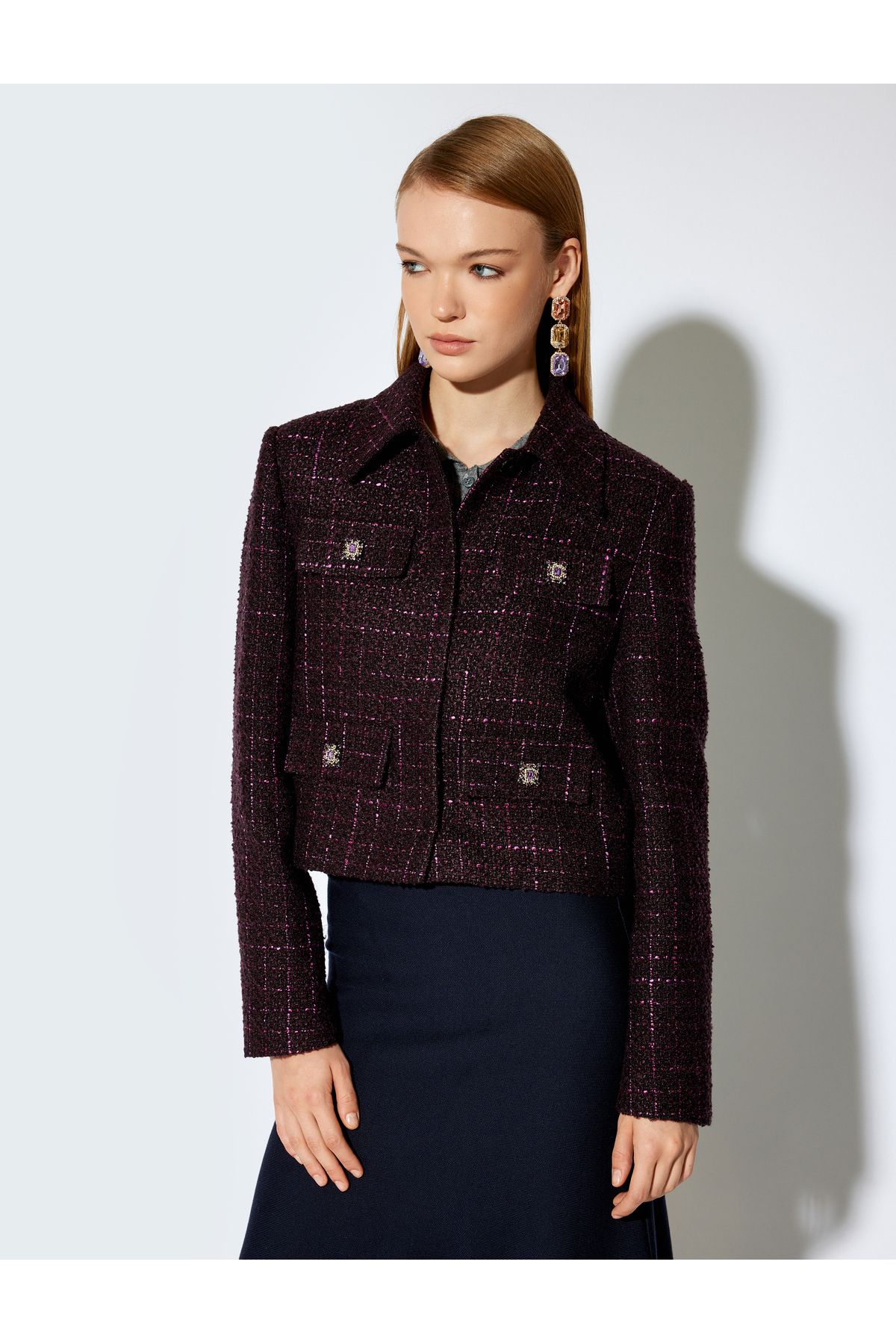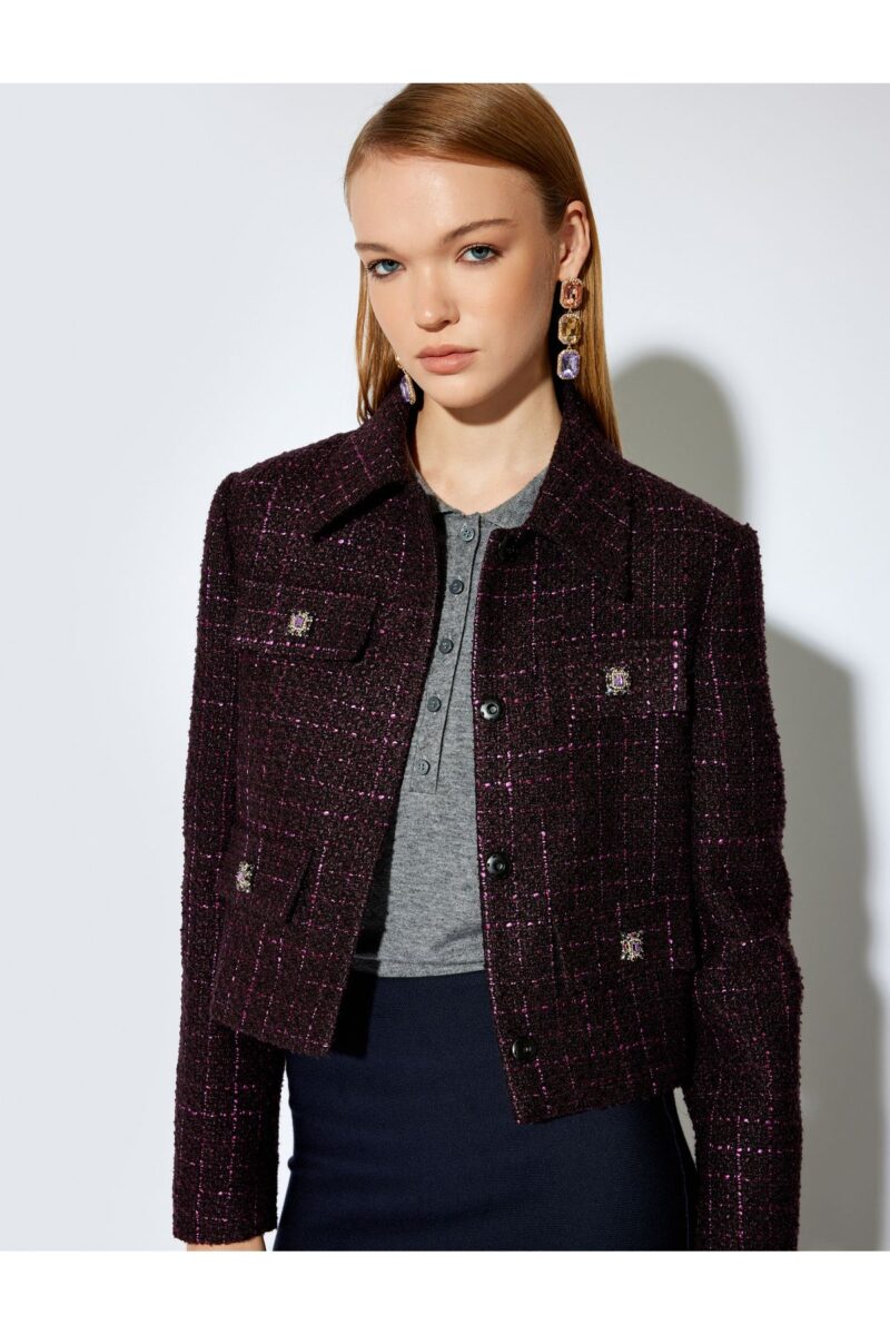 Koton X Melis Ağazat – Taşlı Düğmeli 4 Kapaklı Cep Detaylı Kısa Tüvit Ceket