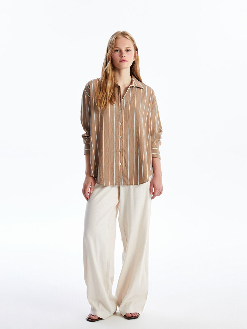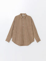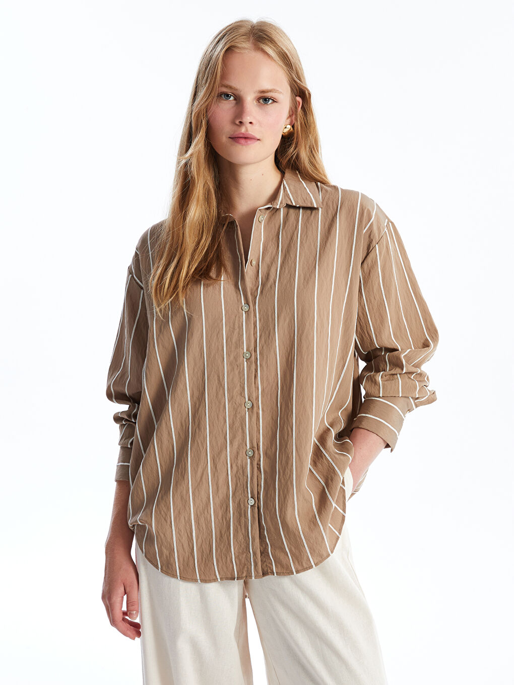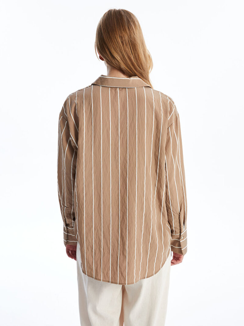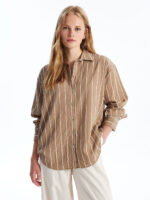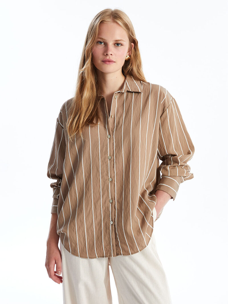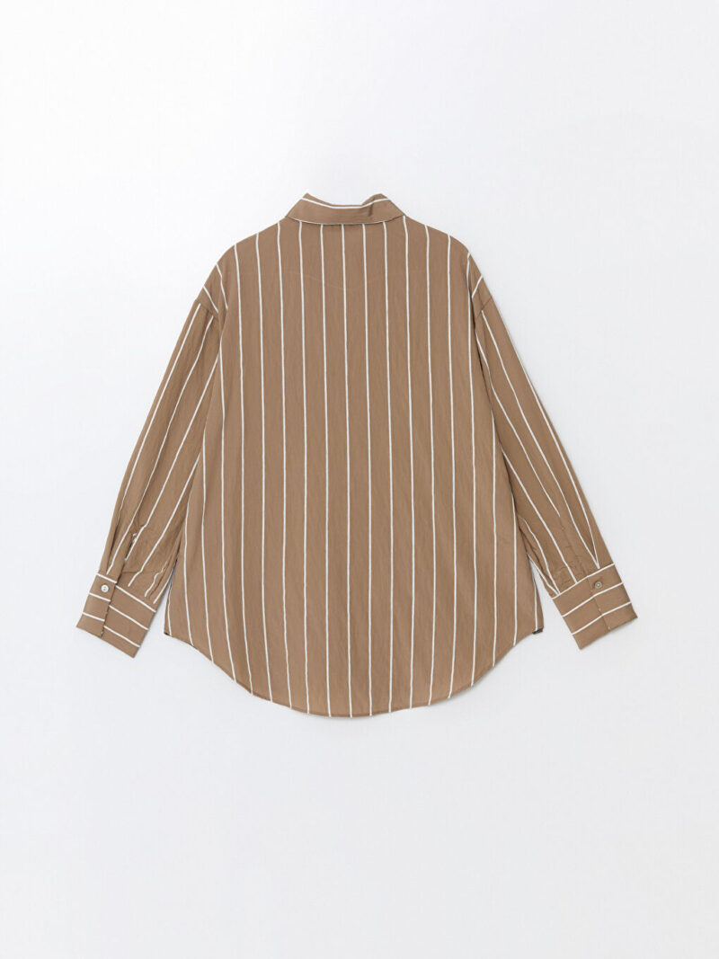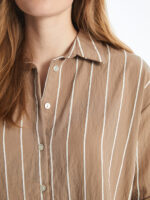 LCW Vision Kahverengi Çizgili Uzun Kollu Oversize Kadın Gömlek
