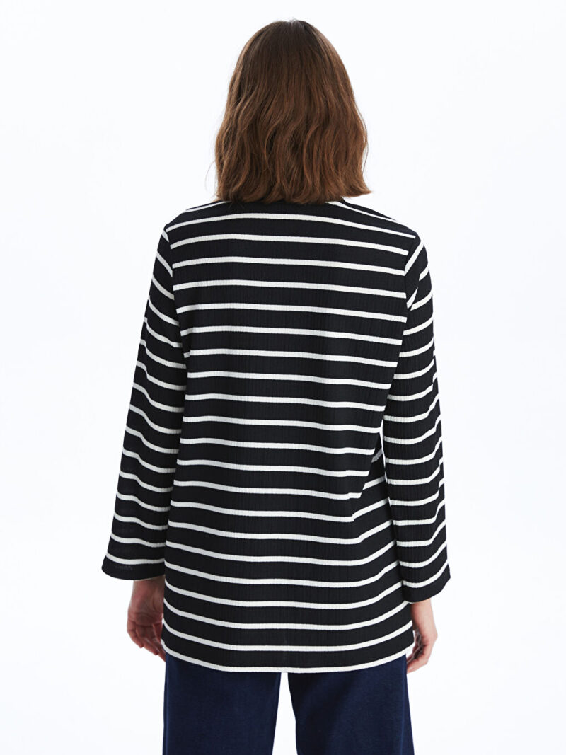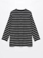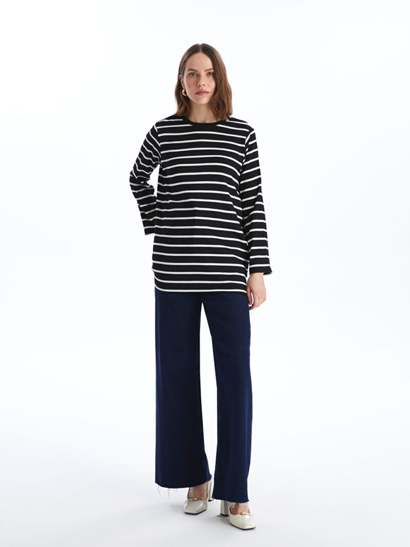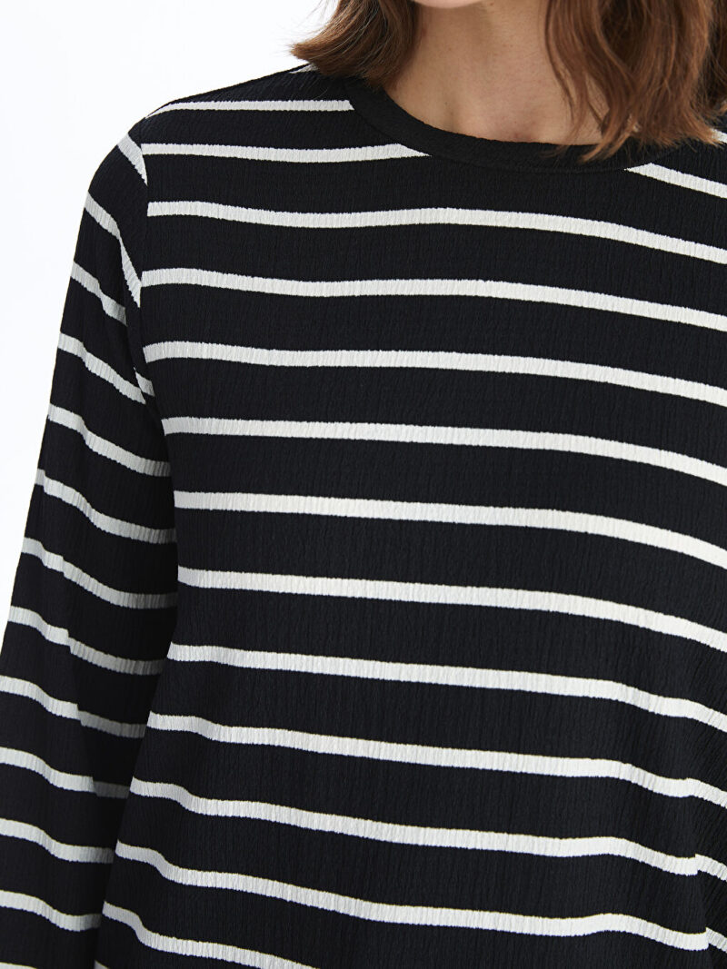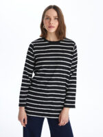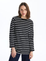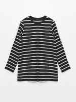 LCWAIKIKI Basic Siyah Bisiklet Yaka Çizgili Uzun Kollu Oversize Kadın Tunik