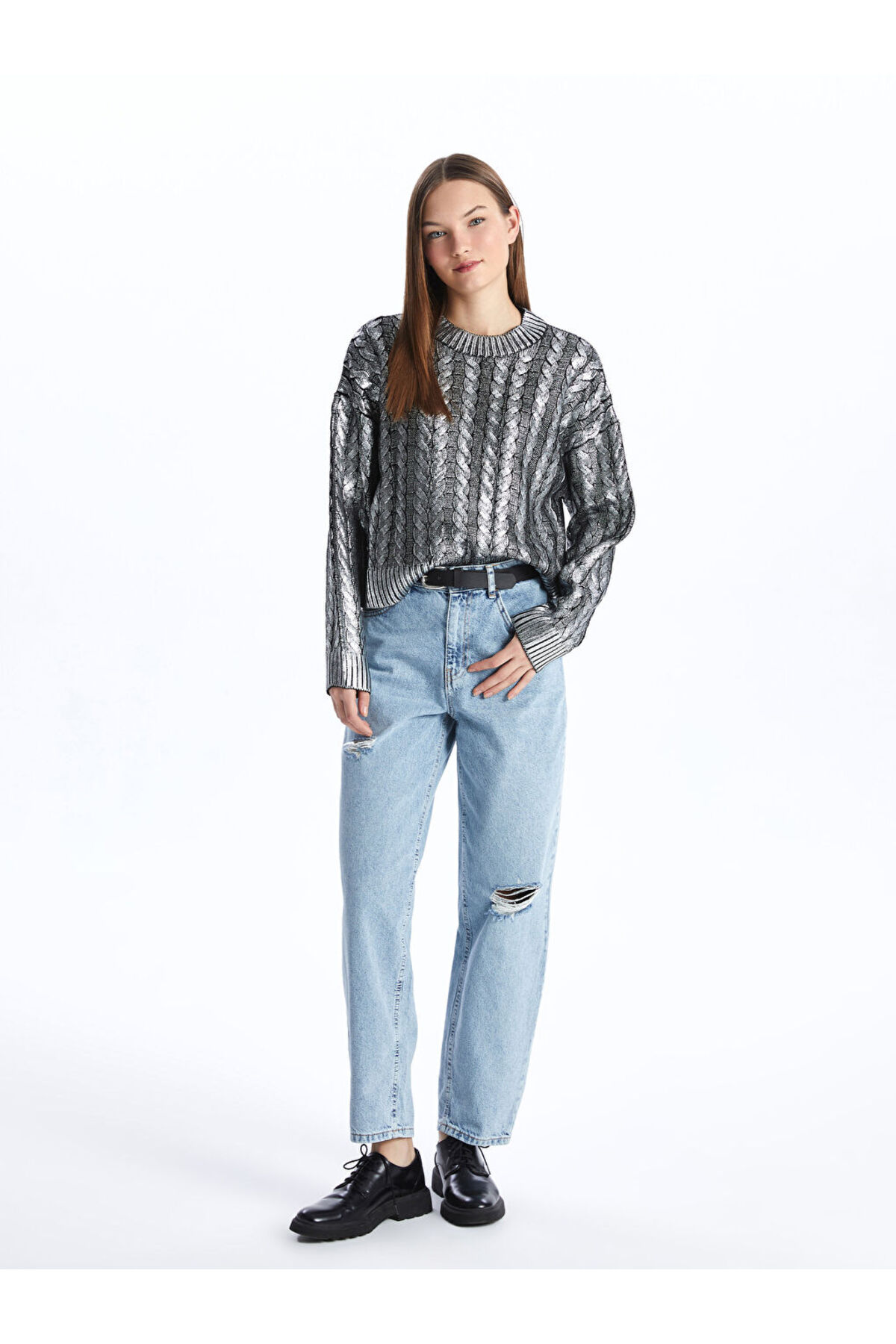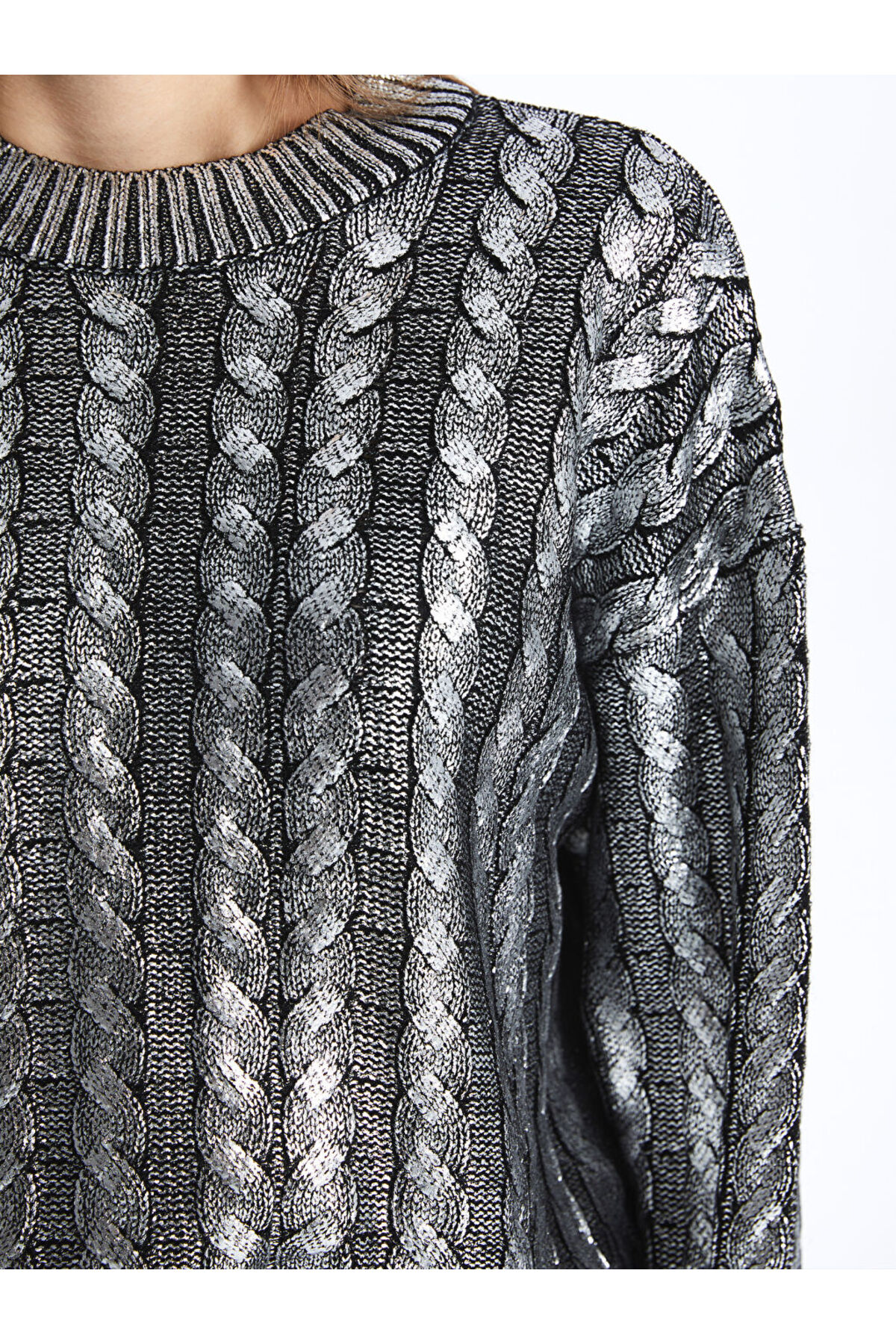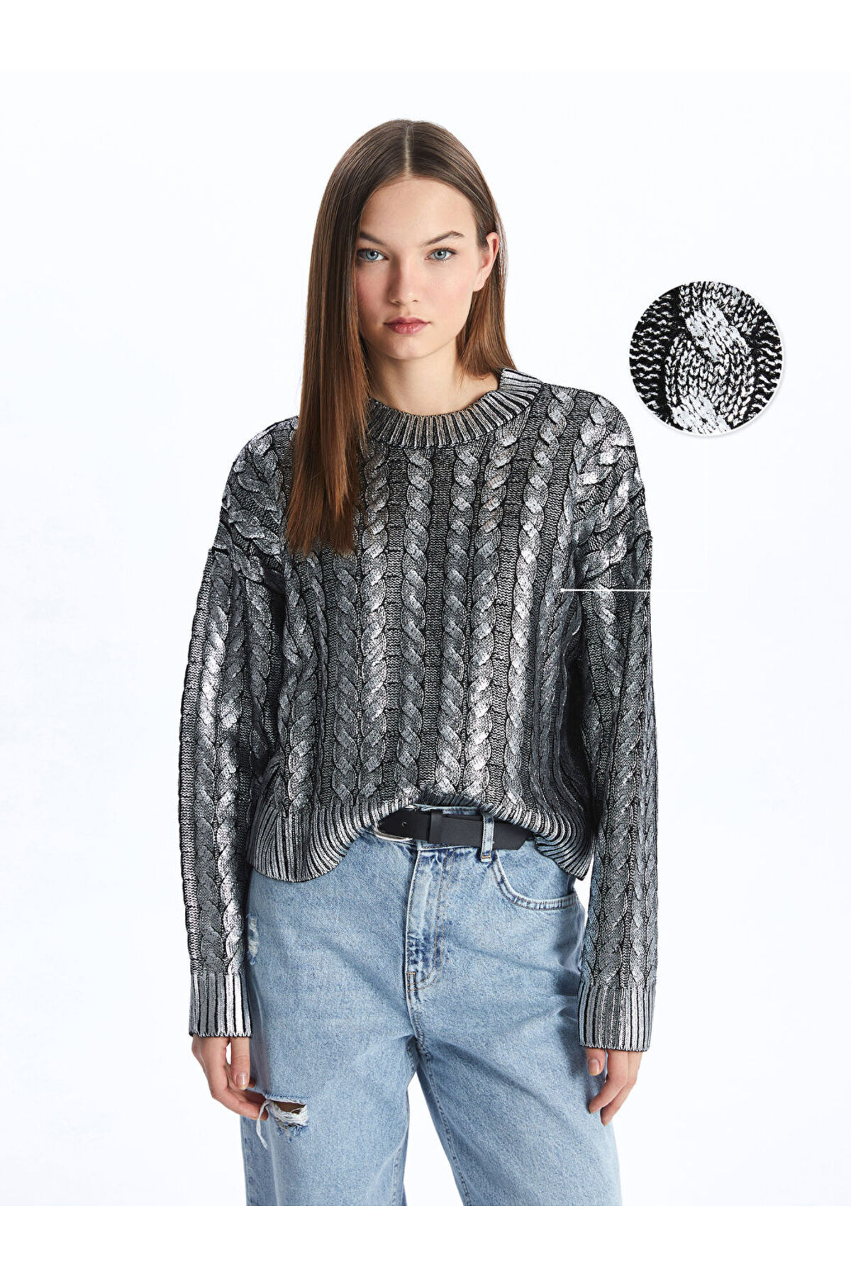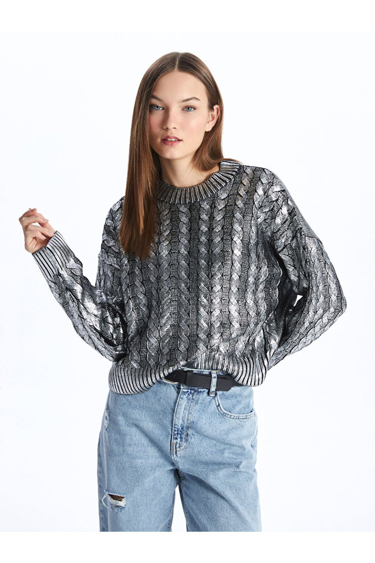 LcWaikiki Bisiklet Yaka Kendinden Desenli Uzun Kollu Kadin Metalik Triko Kazak