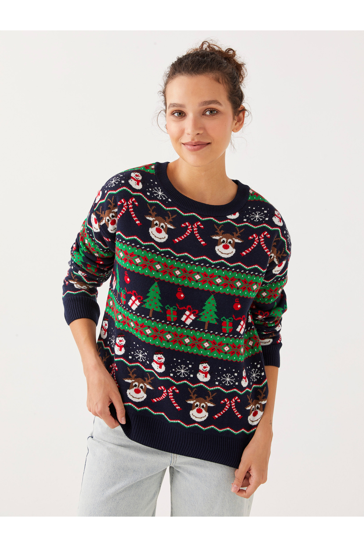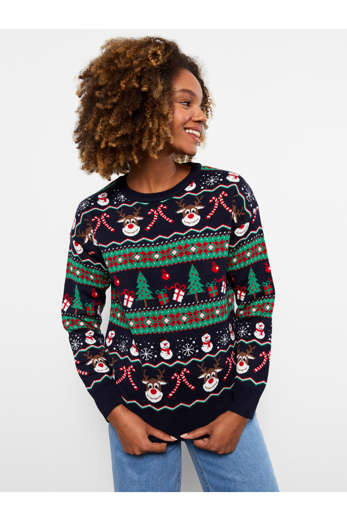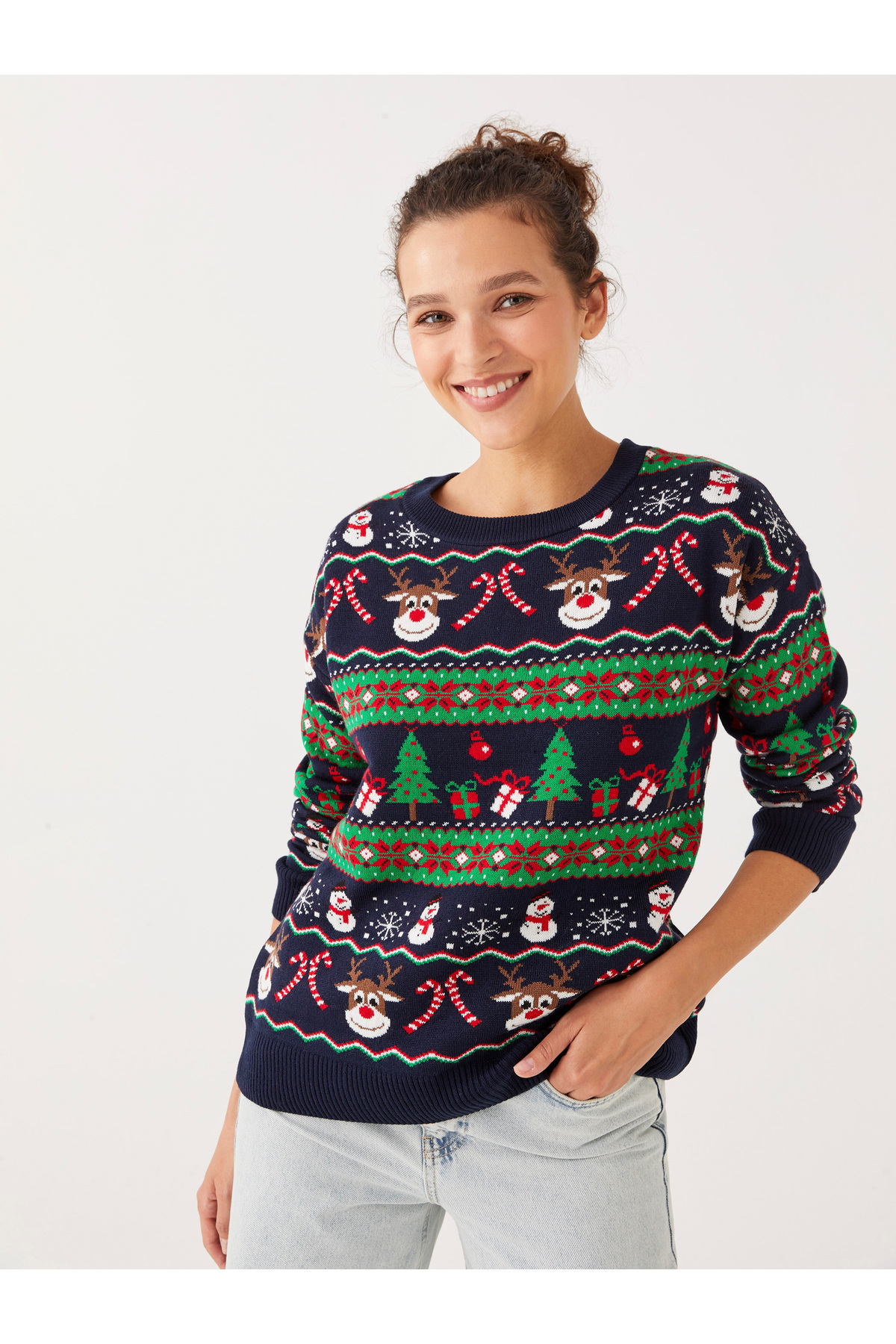 🛍 ژاکت بافتنی زنانه آستین بلند با تم سال نو
