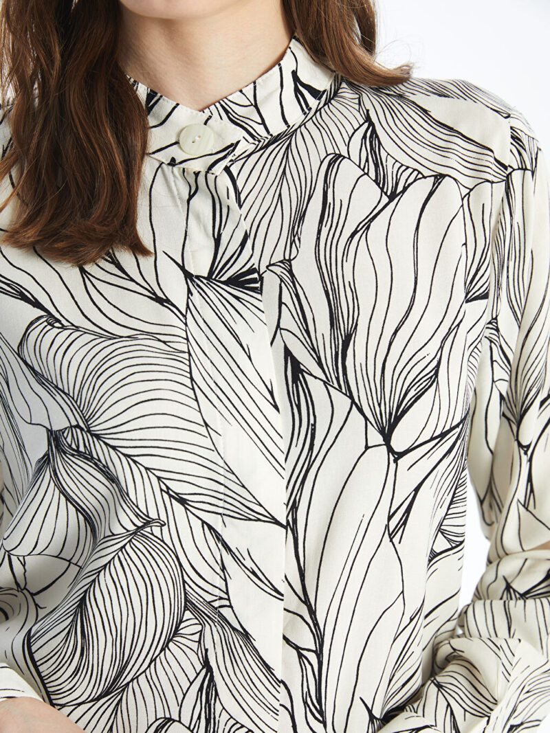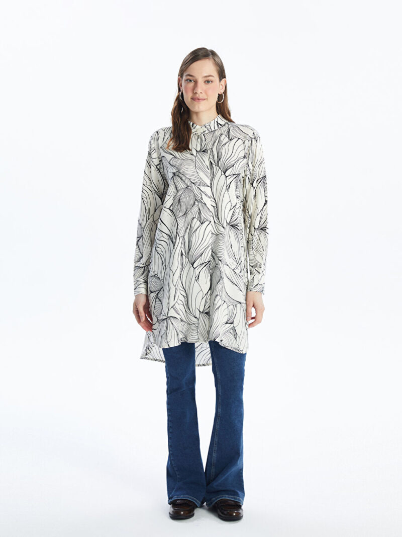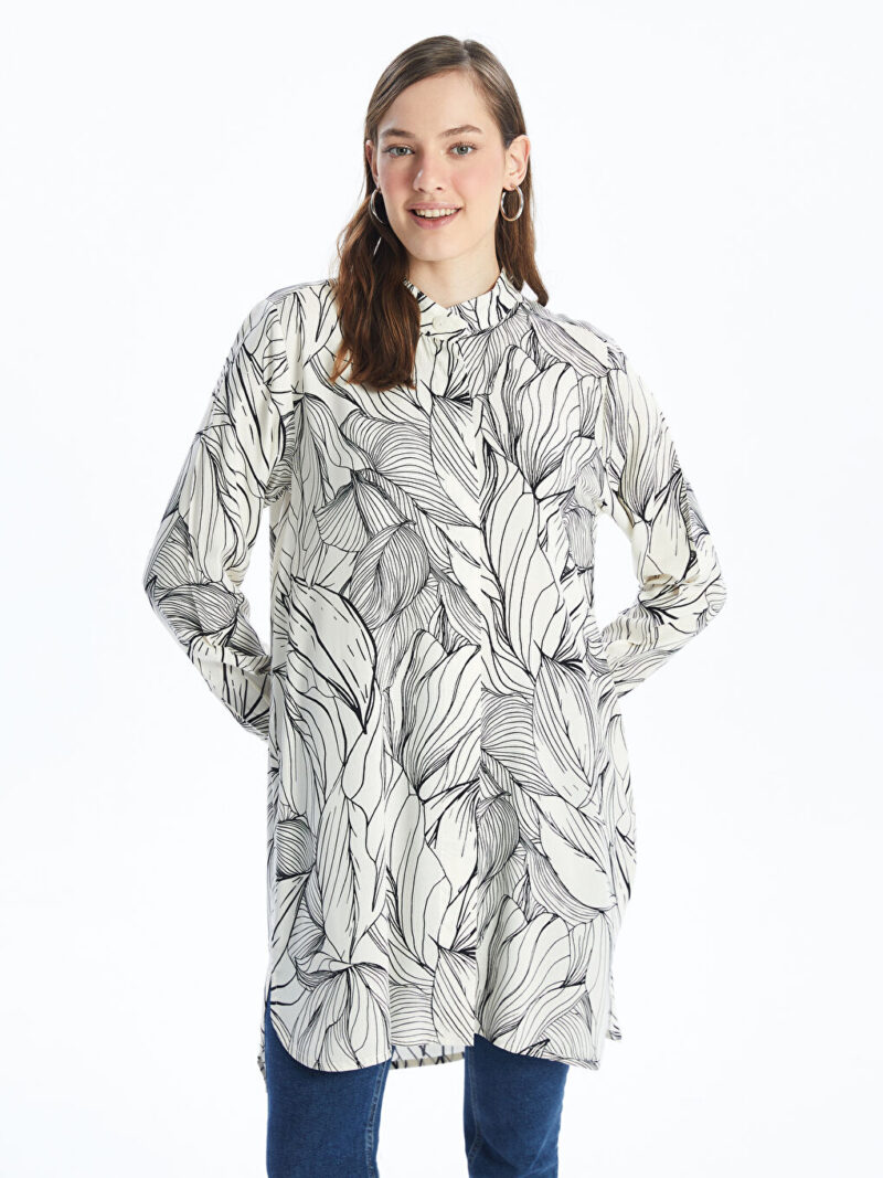 LCWAIKIKI Classic Ekru Bisiklet Yaka Desenli Kadın Gömlek Tunik