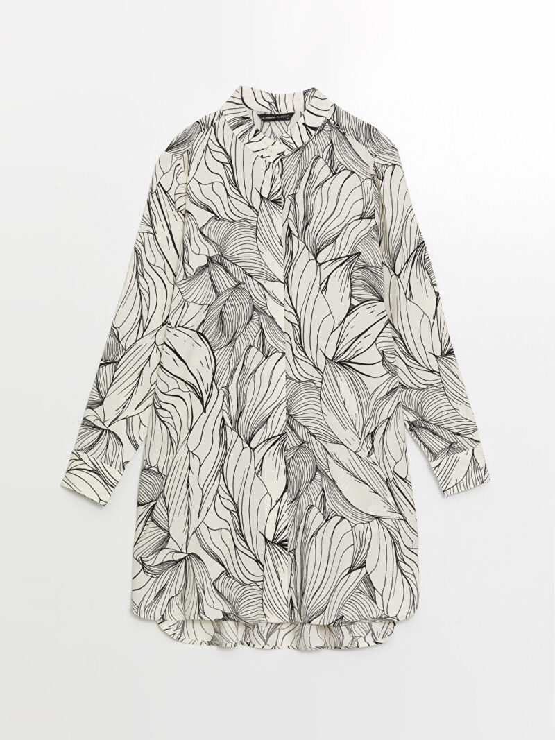 🛍 LCWAIKIKI Classic Ekru Bisiklet Yaka Desenli Kadın Gömlek Tunik
